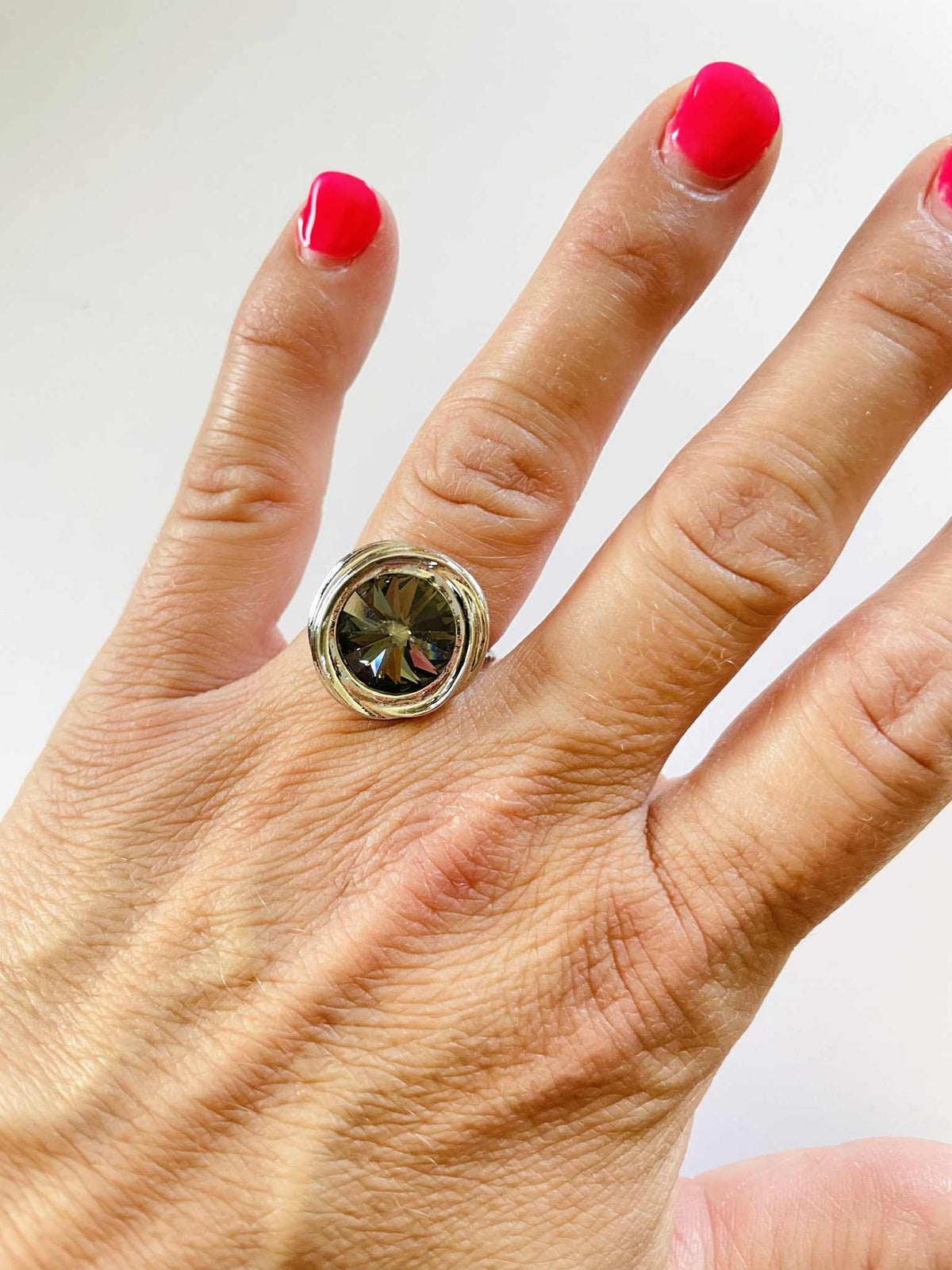 12mm Simple Solitaire Swirl Ring in Silver Night set into Shiny Silver Metal