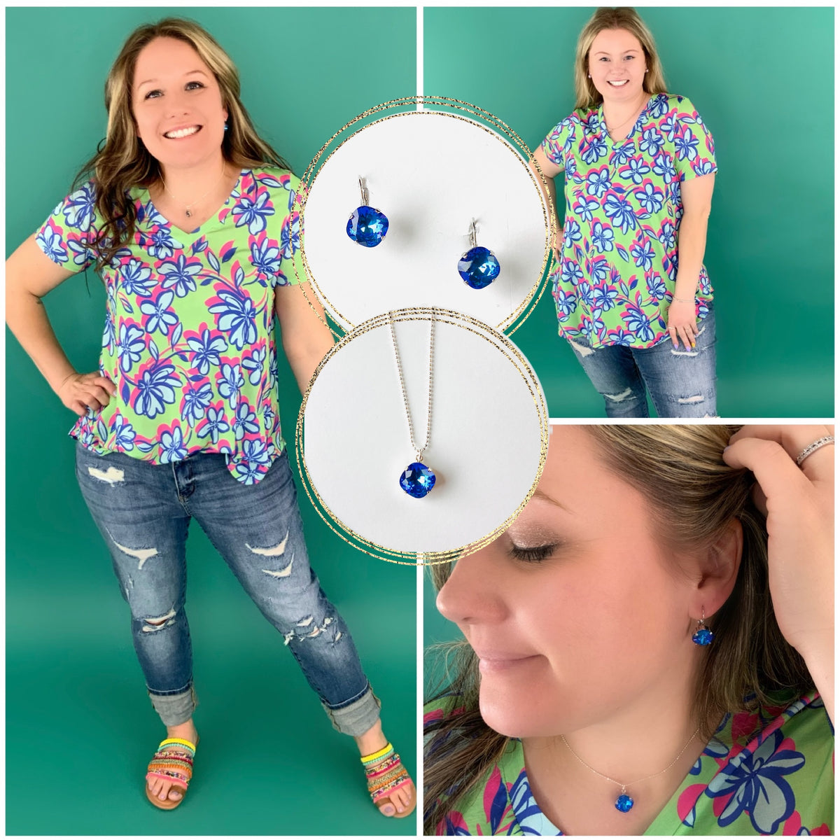 12mm Square Cushion Necklace in Royal Blue DeLite