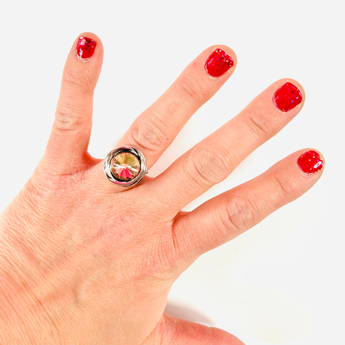 12mm Swirl Ring in Rose Champagne set into Shiny Silver Metal.