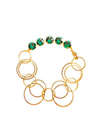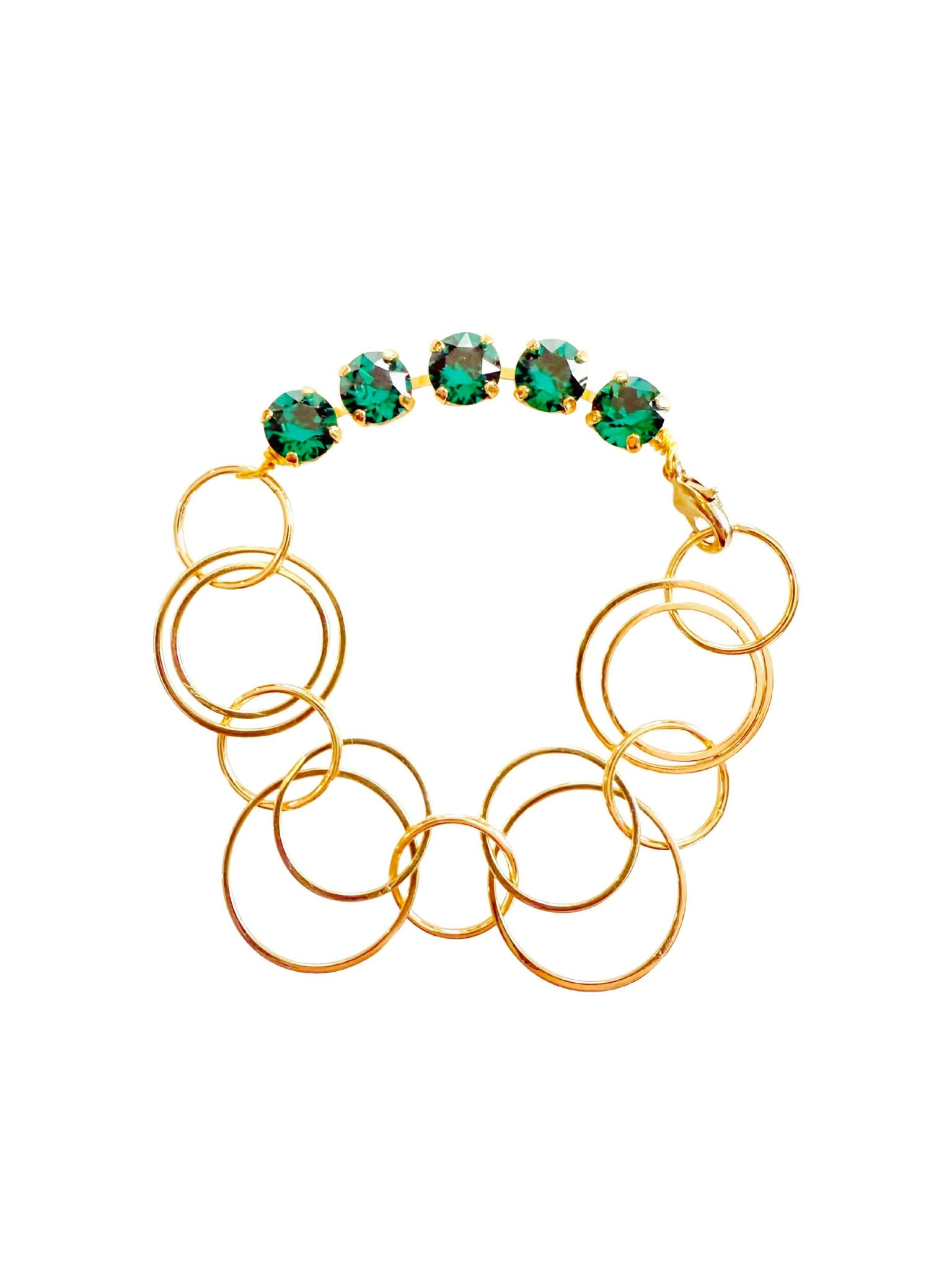 Emerald Loopy Bracelet. Set into Shiny Gold Metal. Emerald Crystals.