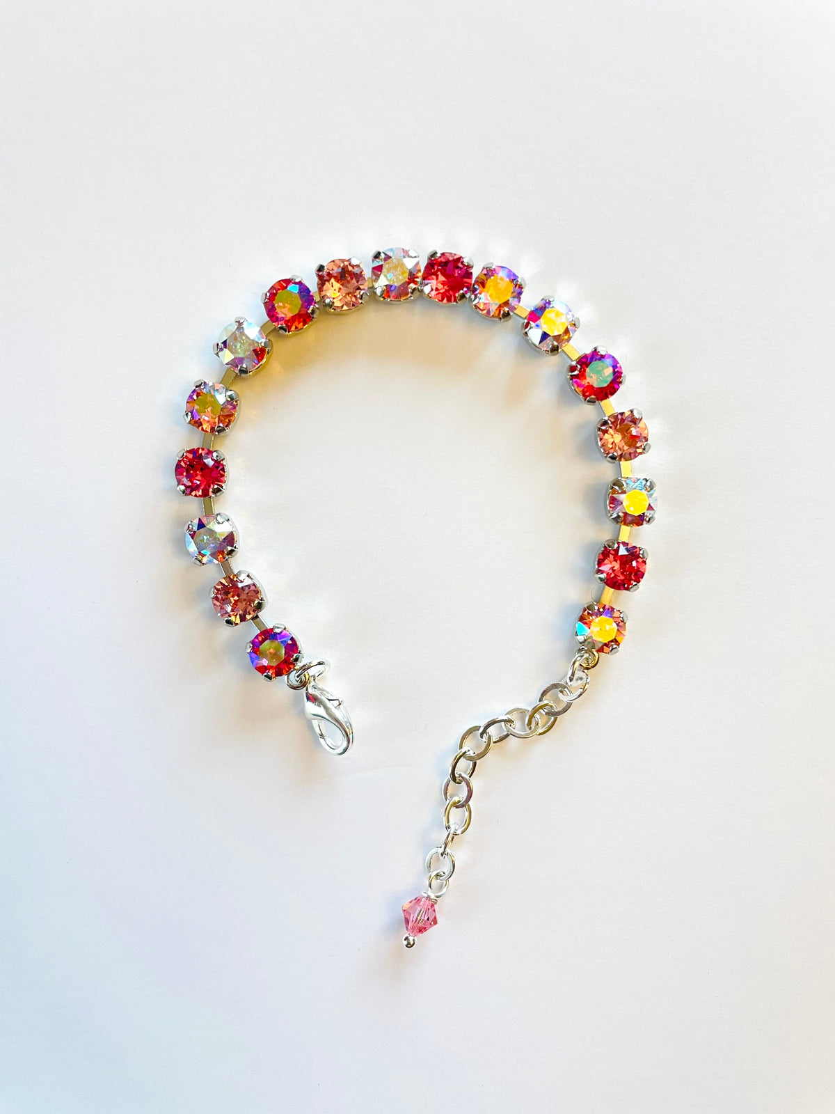 6mm Diamonds Bracelet in Pink Hues set into Shiny Silver Metal