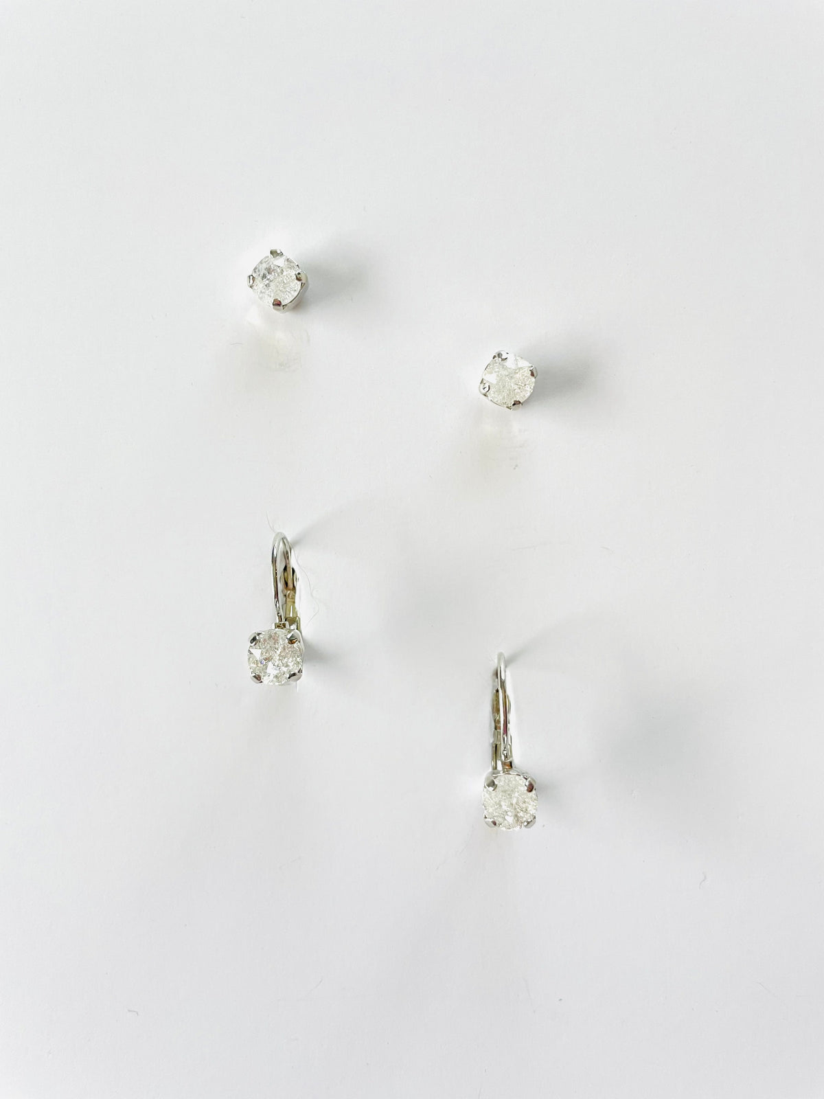 6mm Drop OR Post in Crystal Ice set into Silver Plated Metal.