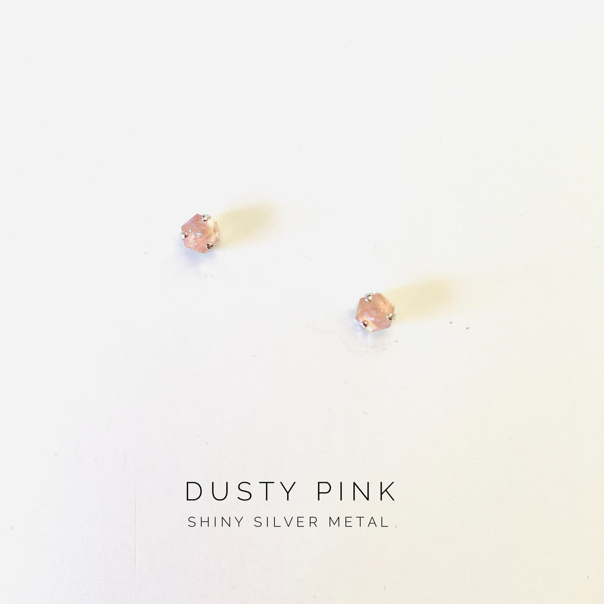 6mm Kaleidoscope Hexagon Post Earrings {Multiple Colors!} set into Shiny Silver Metal