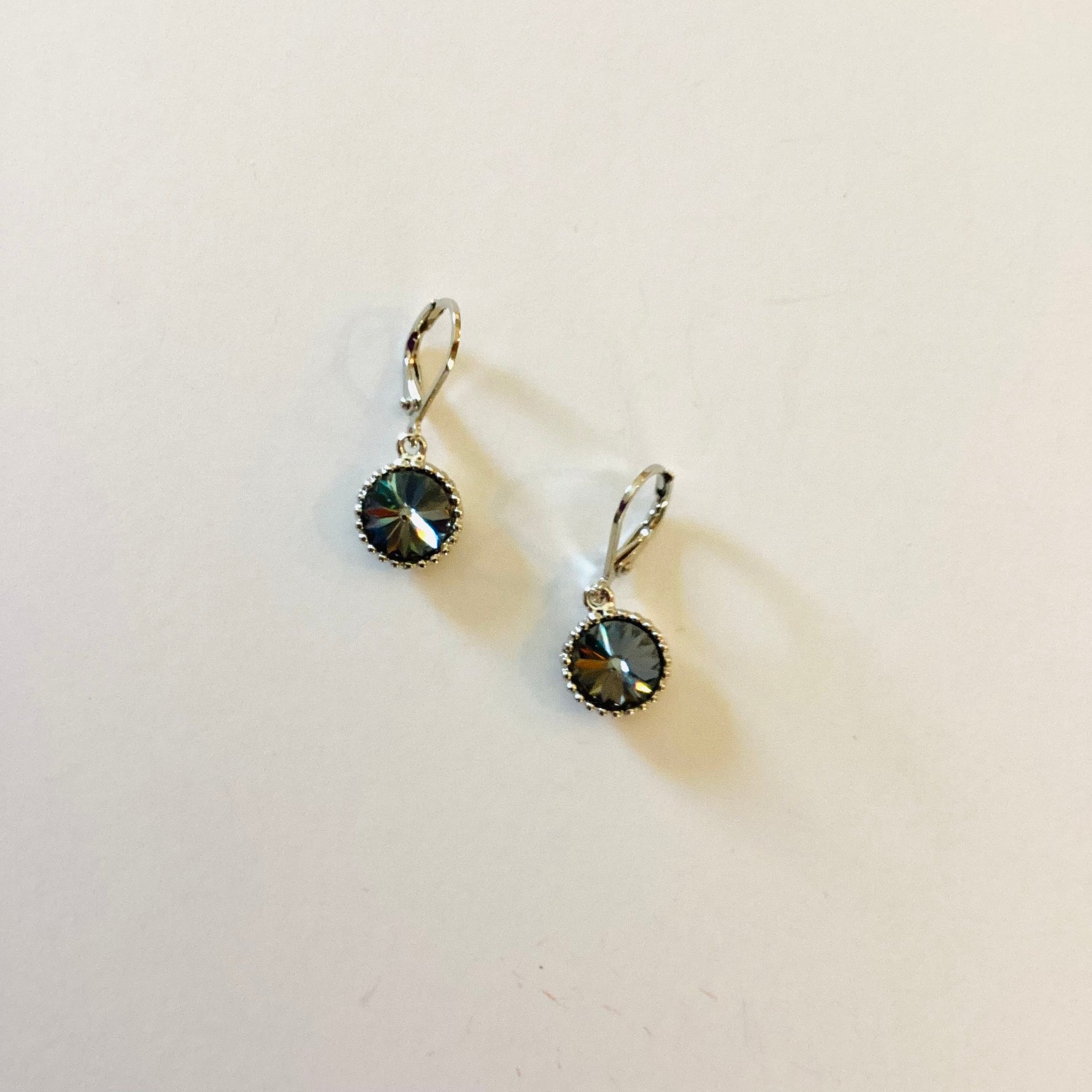 8mm Beaded Simple Rivoli Drop Earring {Multiple Colors} set into Shiny Silver Metal.