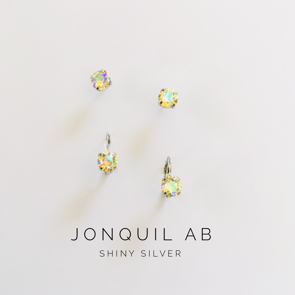 8mm Drop OR Post featuring Jonquil AB set into Shiny Silver Metal