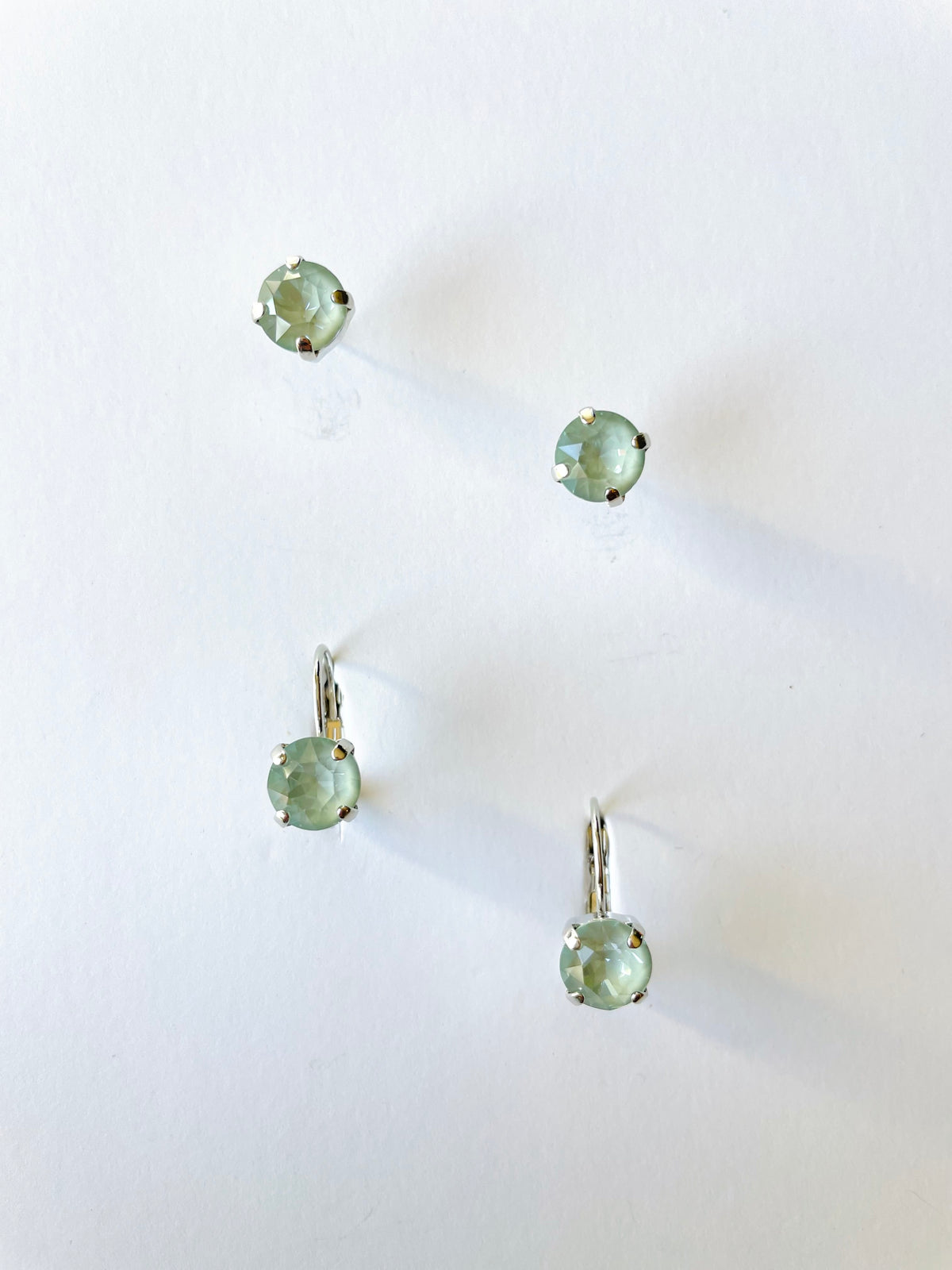 8mm Drop OR Post in Agave Ignite set into Silver Plated Metal.