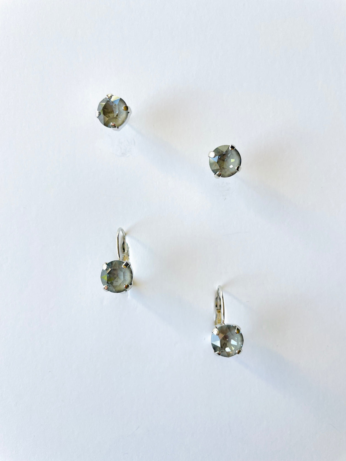 8mm Drop OR Post in Dark Grey Ignite set into Silver Plated Metal.