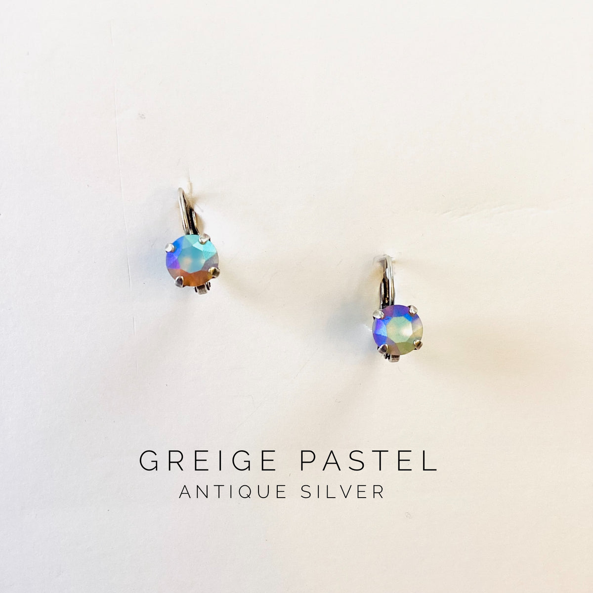 8mm Drop OR Post in Greige Pastel in Antique Silver Metal