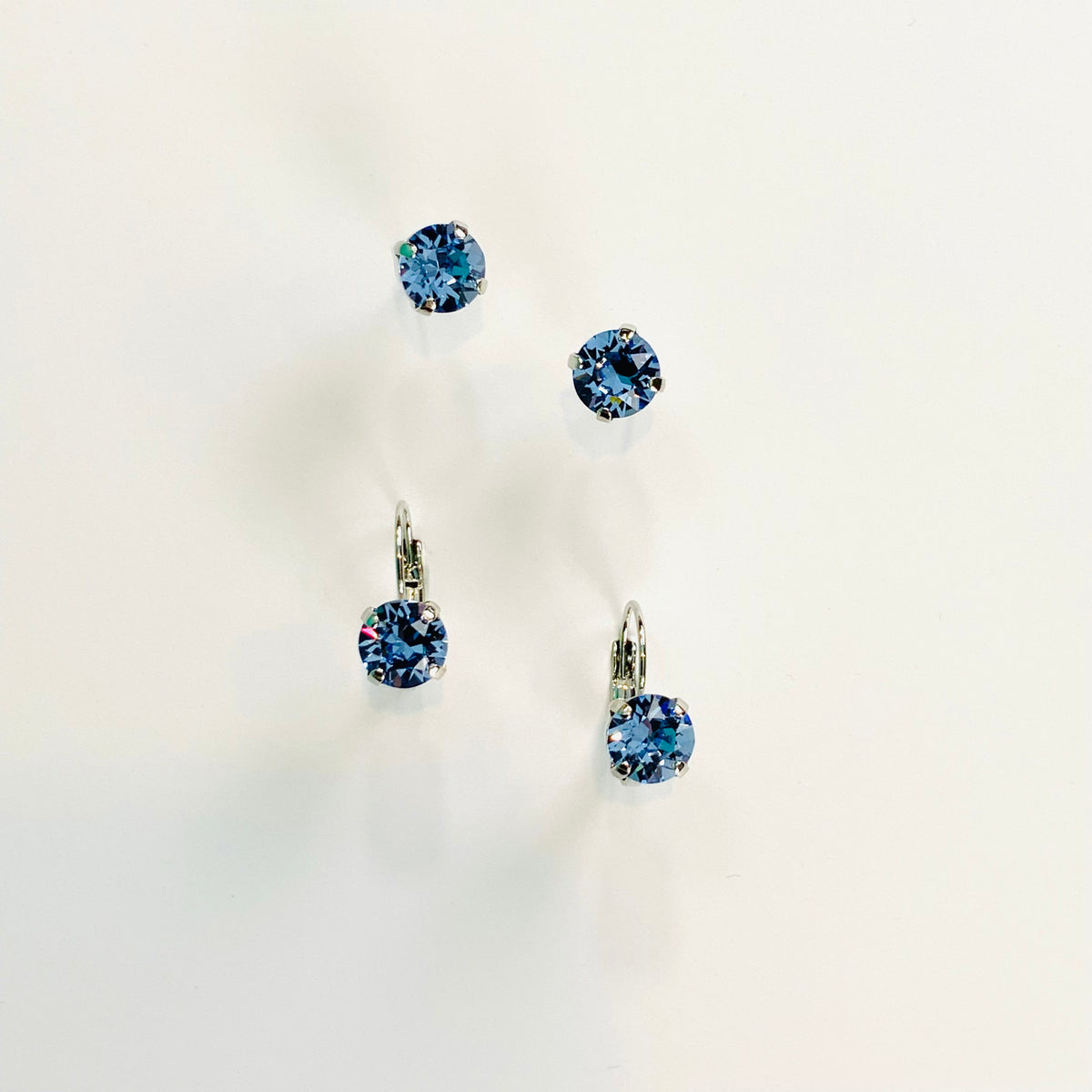 8mm Drop OR Post in Light Sapphire in Shiny Silver Metal