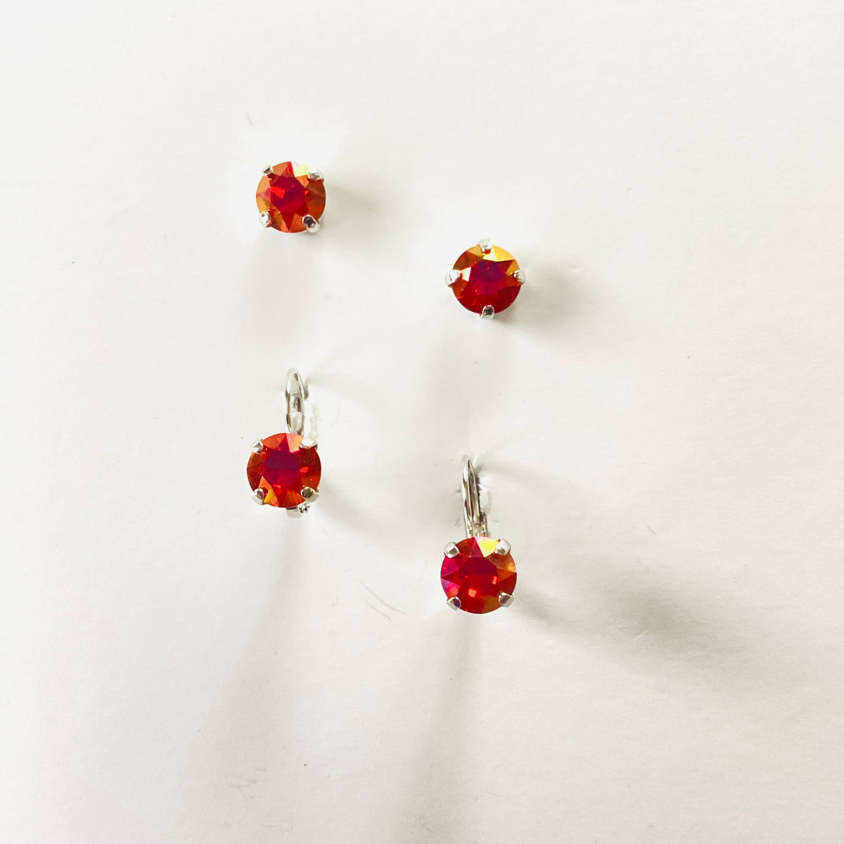 8mm Drop OR Post in Light Siam Lemon set into Shiny Silver Metal