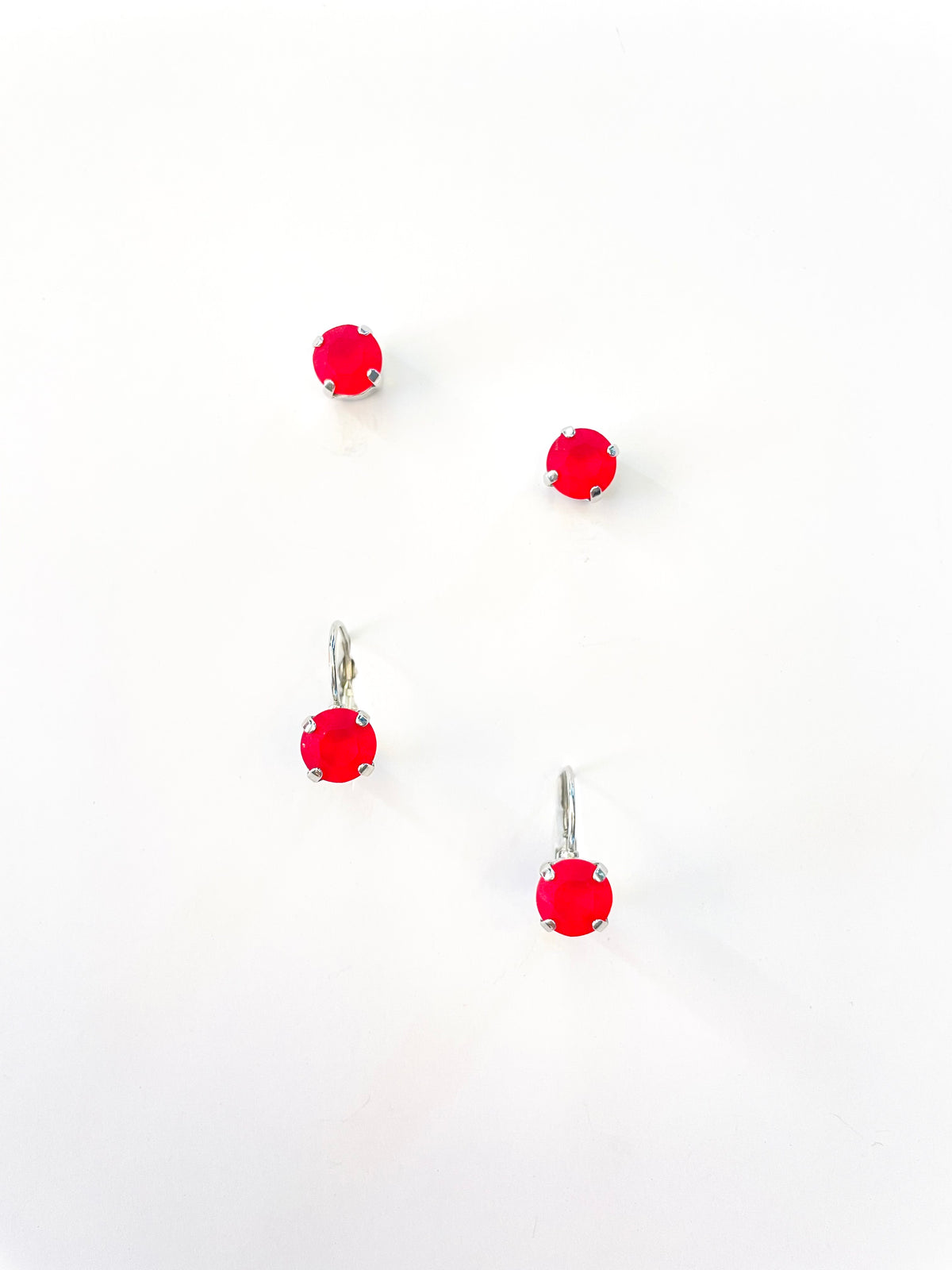 8mm Drop OR Post in Light Siam Matte set into Silver Plated Metal.