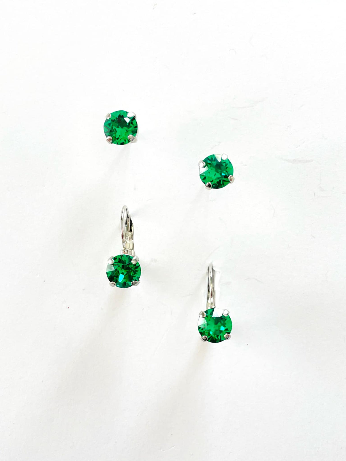 8mm Drop OR Post in Majestic Green set into Shiny Silver Metal.