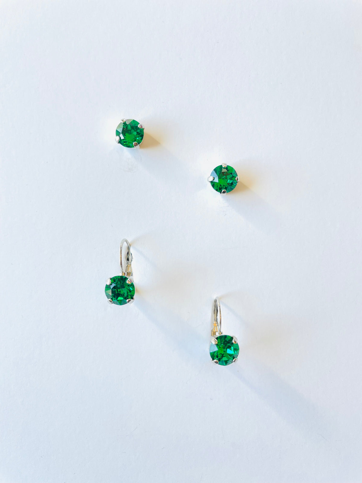 8mm Drop OR Post in Majestic Green set into Silver Plated Metal.