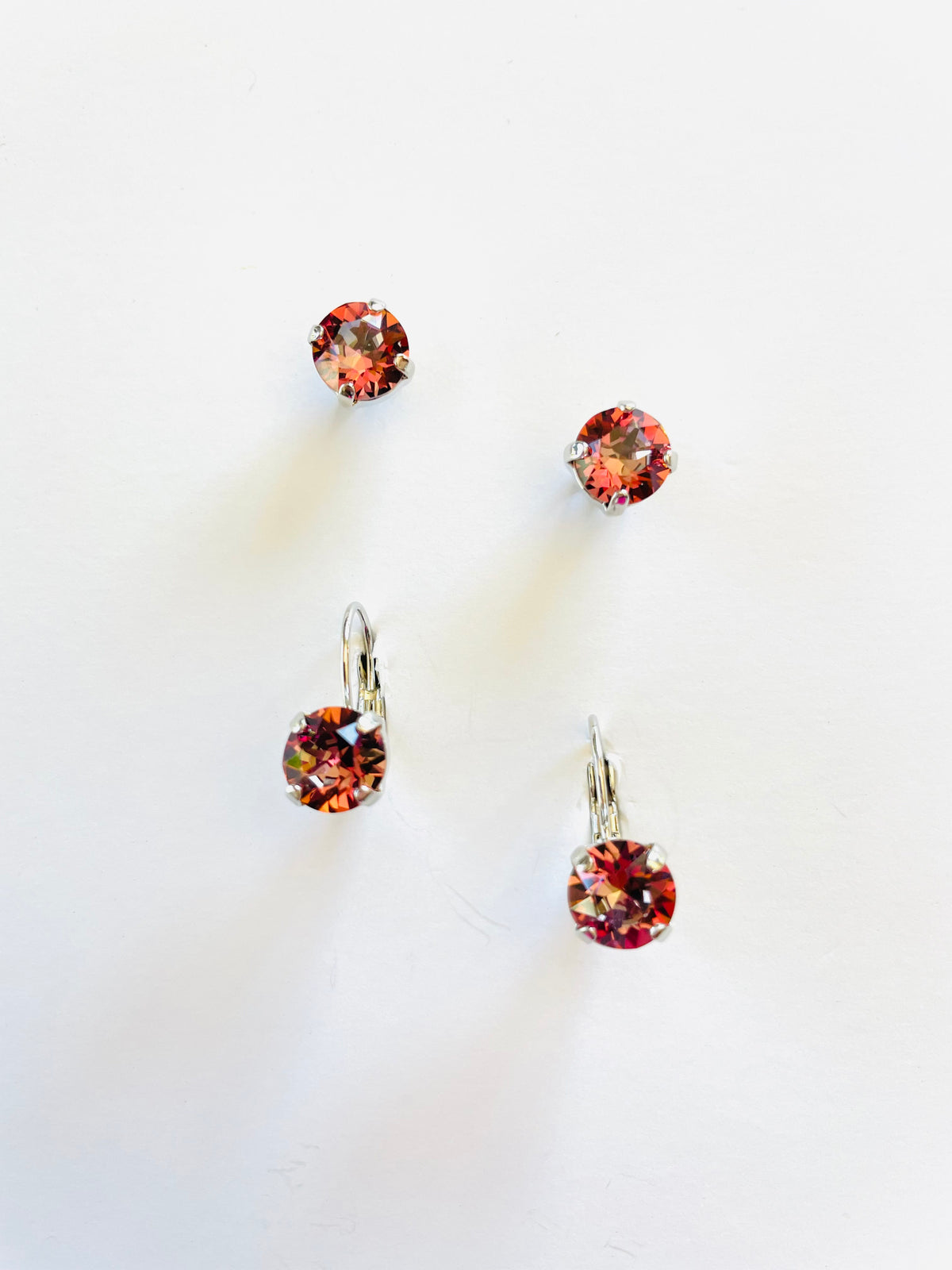 8mm Drop OR Post in Passion set into Shiny Silver Metal