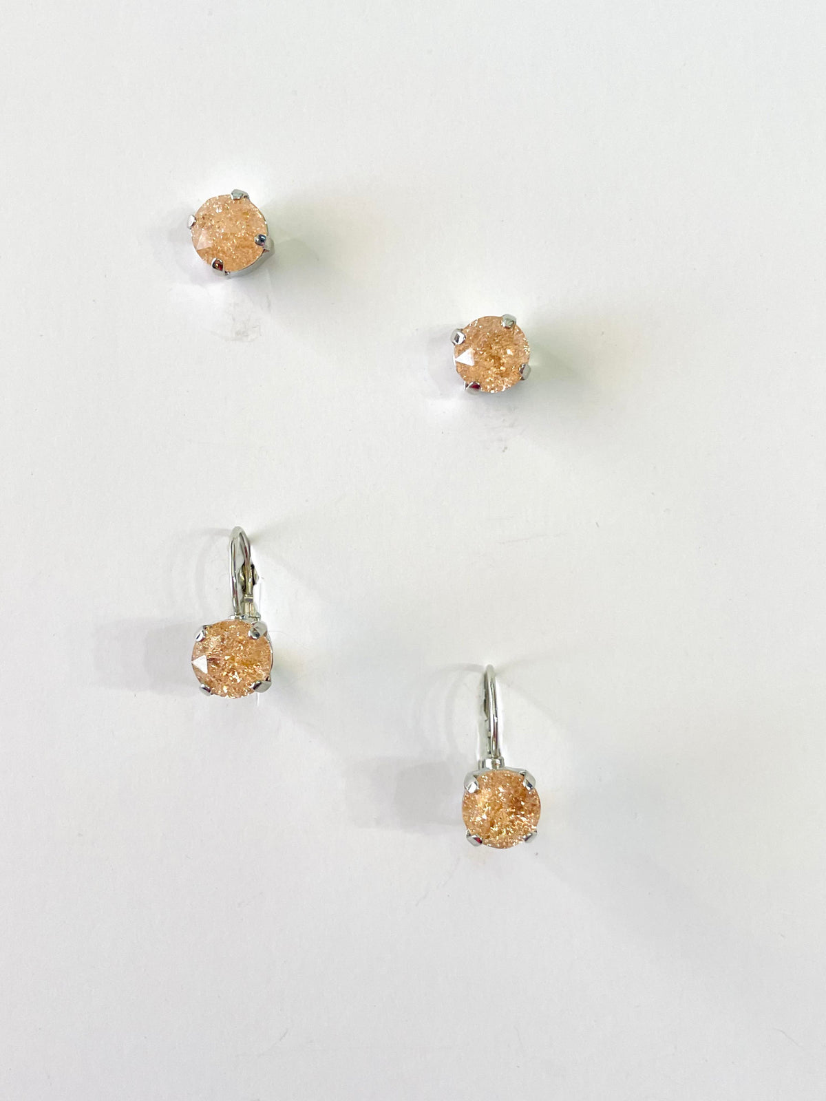8mm Drop OR Post in Peach Ice set into Silver Plated Metal.