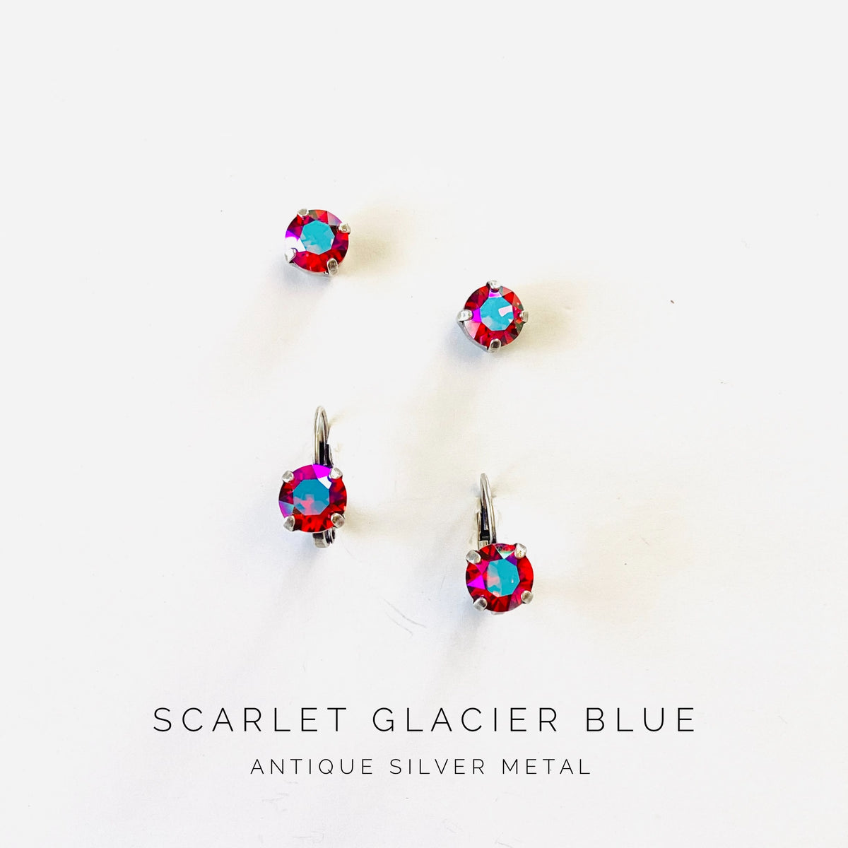 8mm Drop OR Post in Scarlet Glacier Blue set into Antique Silver Metal