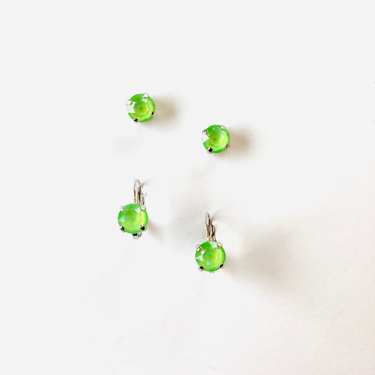 8mm Drop OR Post in Ultra Lime set into Shiny Silver Metal