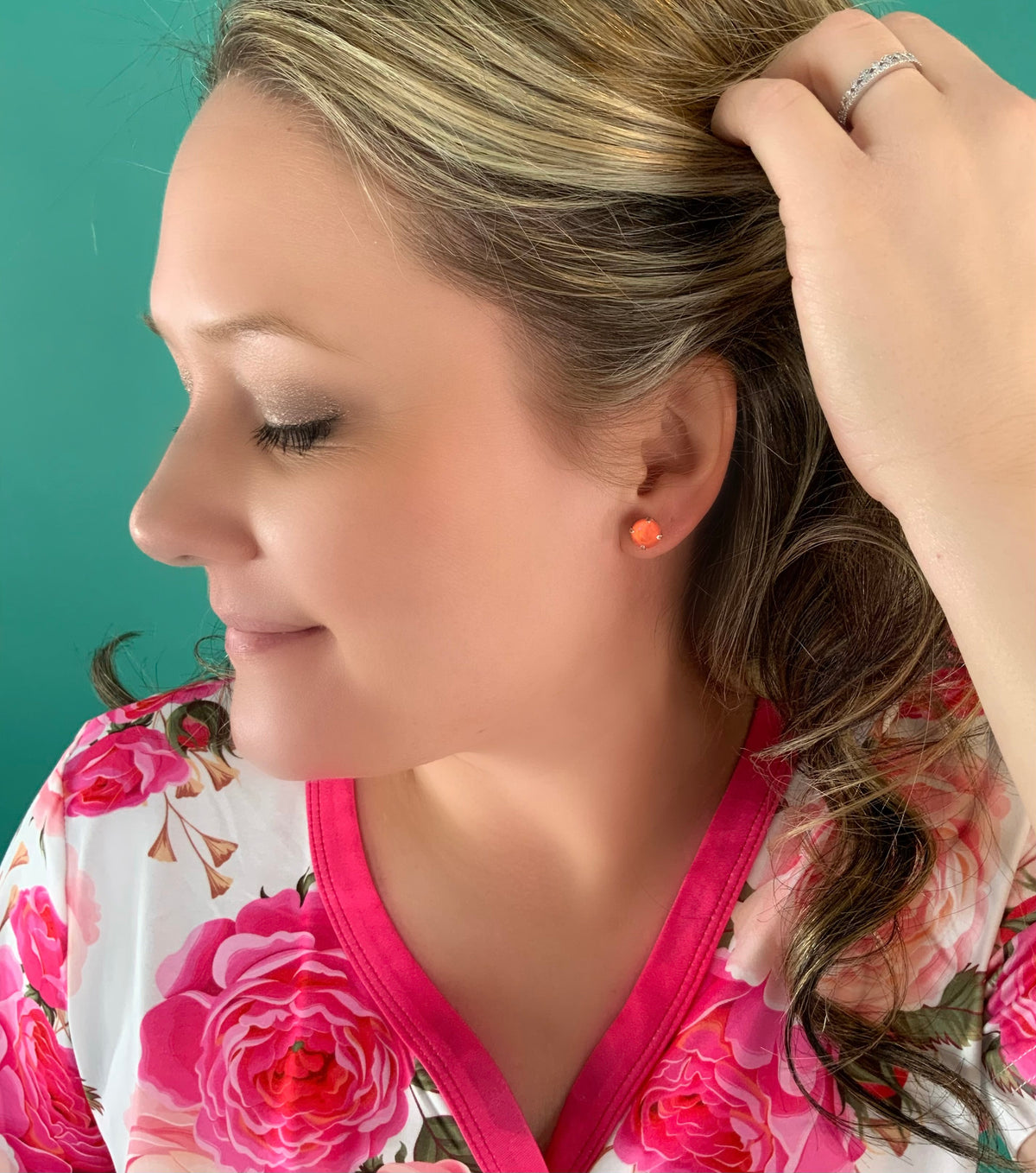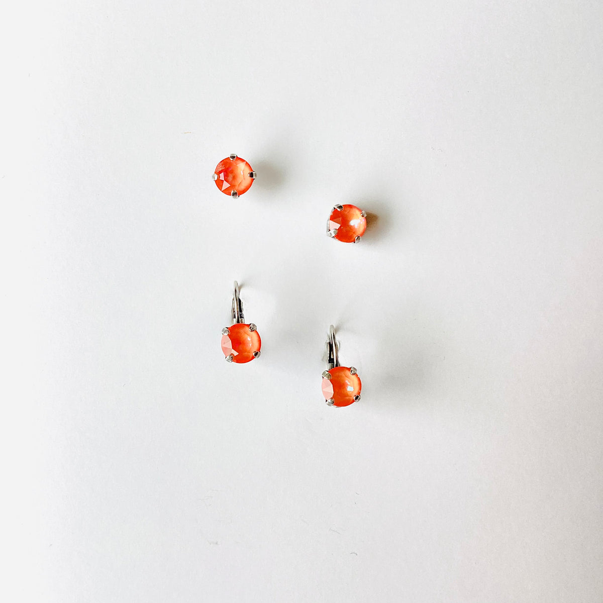 8mm Drop OR Post in Ultra Orange AB set into Antique Silver Metal
