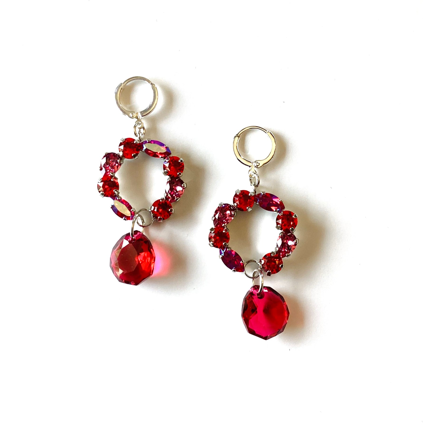 All Summer Long Earrings set into Shiny Silver Metal with Light Siam, Light Siam Shimmer, Rose, and Scarlet Crystals.