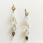 Art Deco Long Chandelier Earring featuring LCT White Patina and Pops of Golden Shadow, Lemon, Crystal AB, Bronze Shade