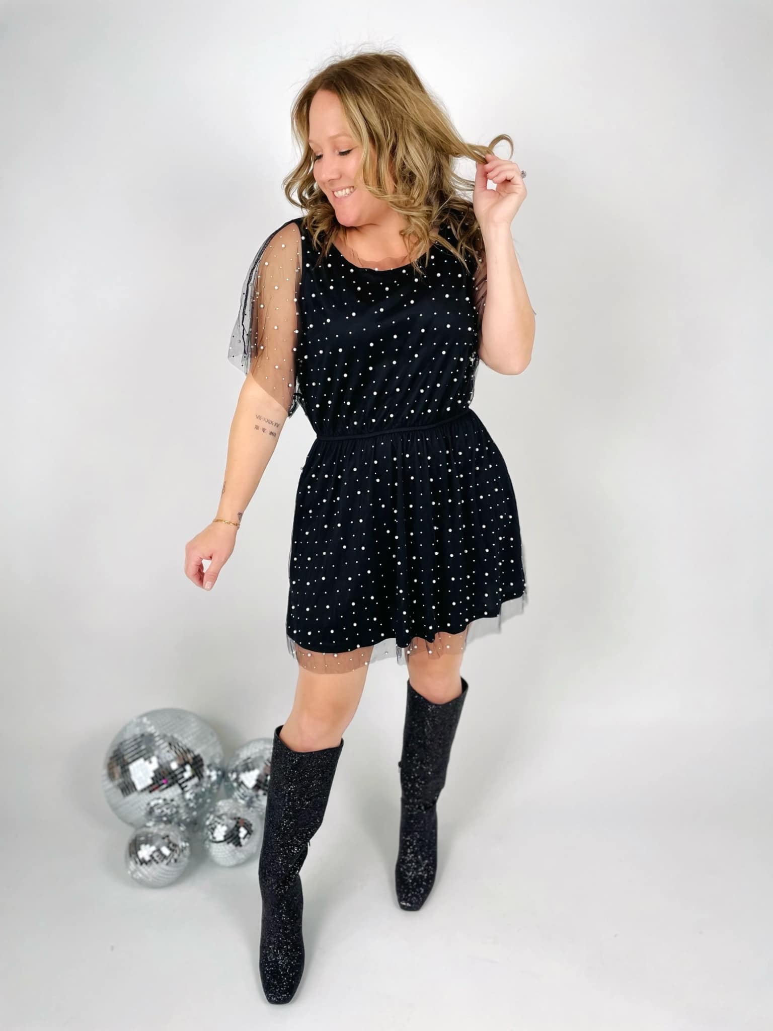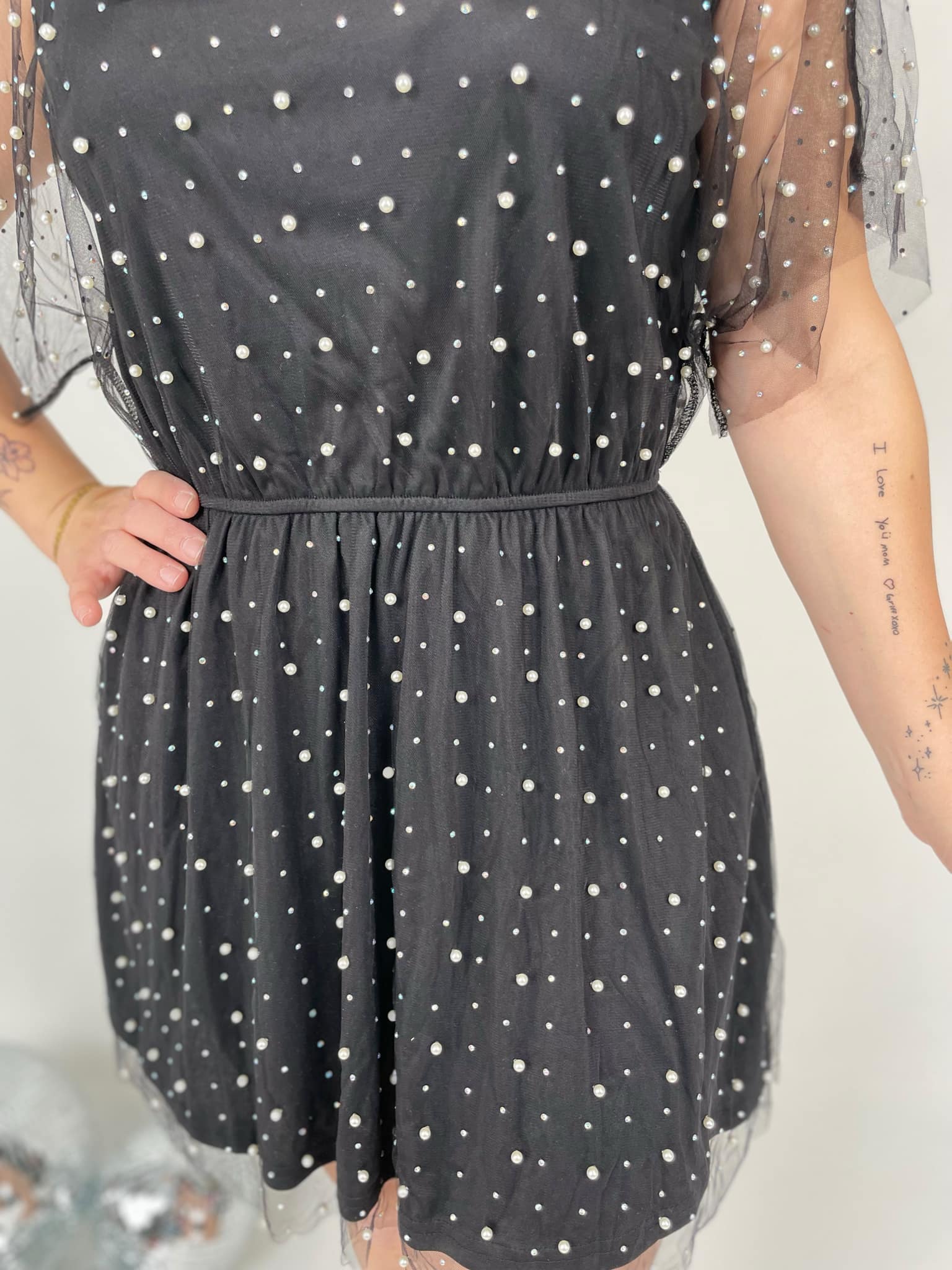 Get ready to slay in this Beaded Beauty Dress! With its pearl beaded short sleeves and stunning design, you'll be the center of attention at any event. Perfect for a night out or special occasion, this dress will have you looking and feeling beautiful. Who needs diamonds when you have pearls?!