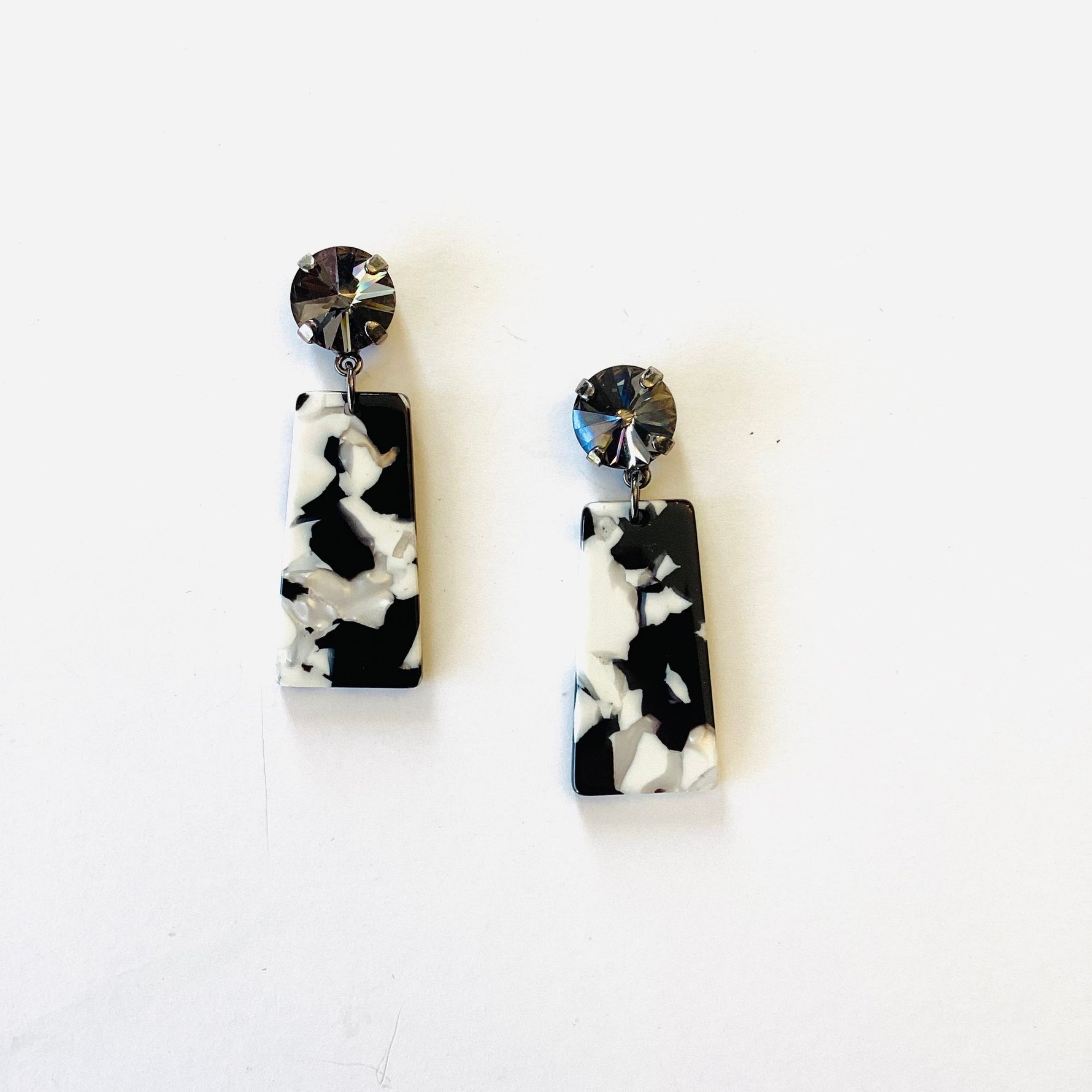 Black + White Confetti Earrings in Desire set into Black Metal with Desire Crystals in 10mm Size Crystals.