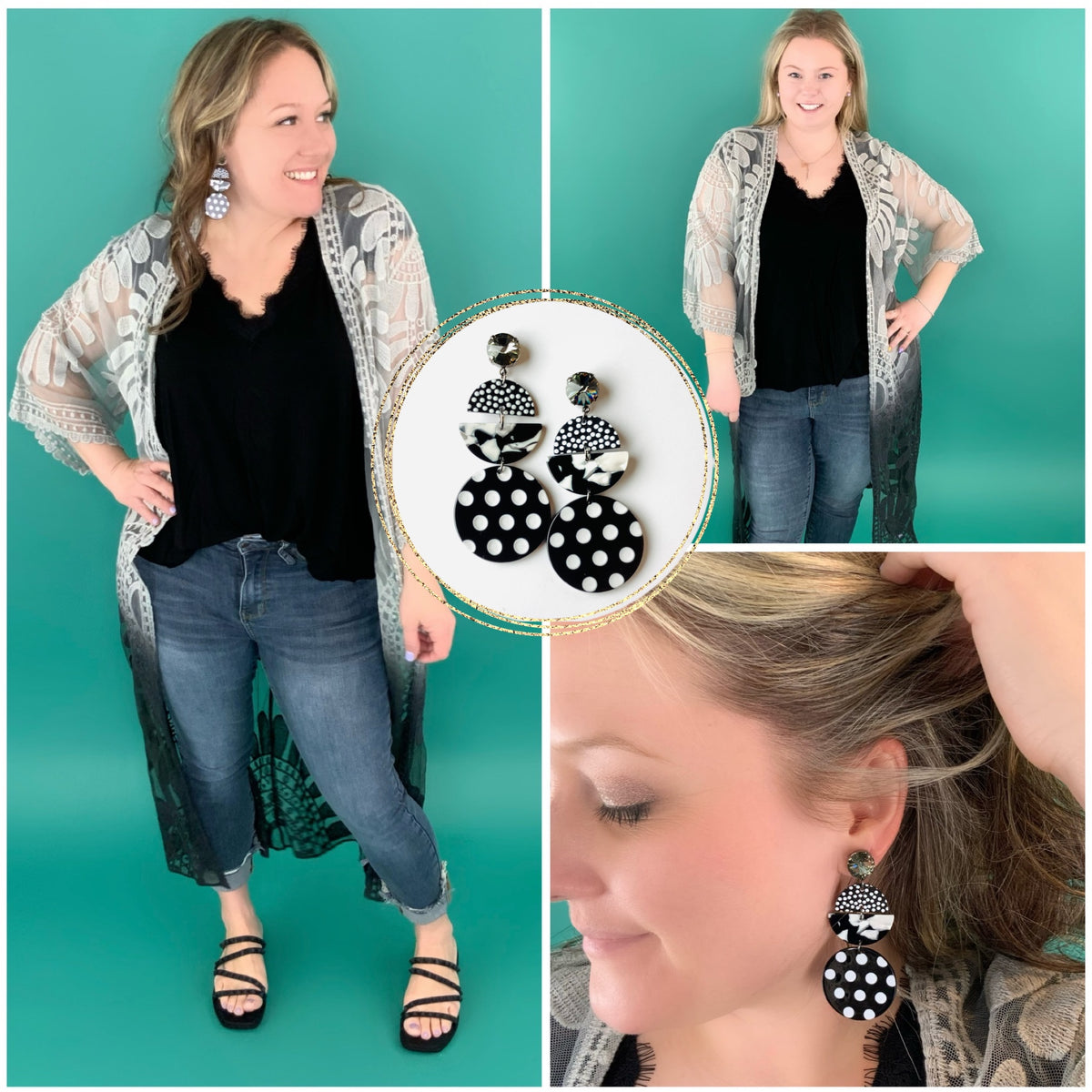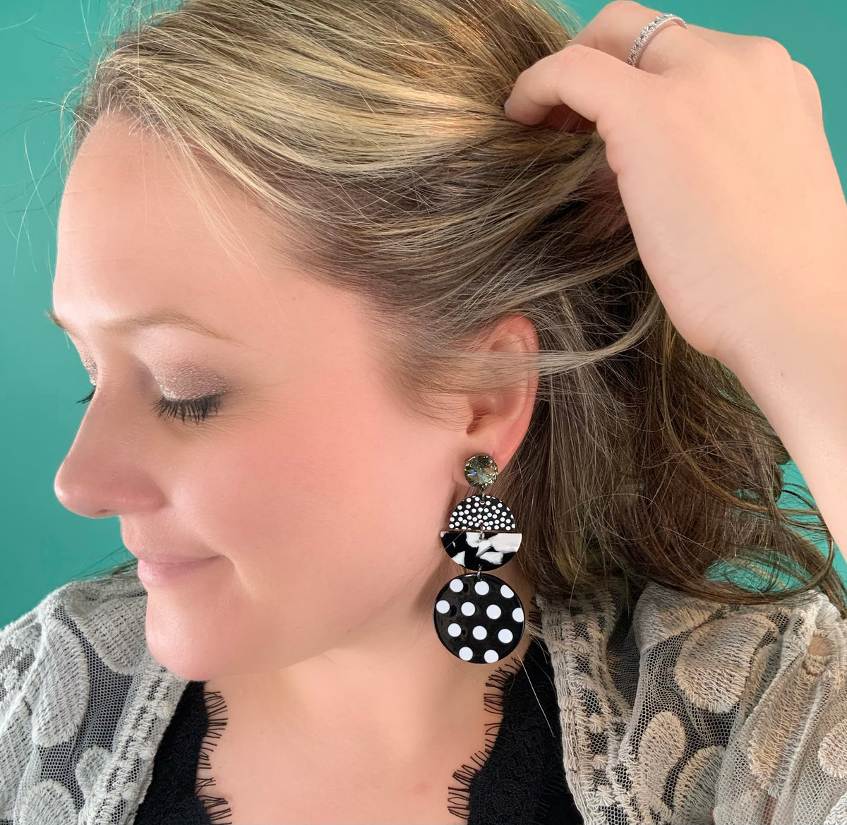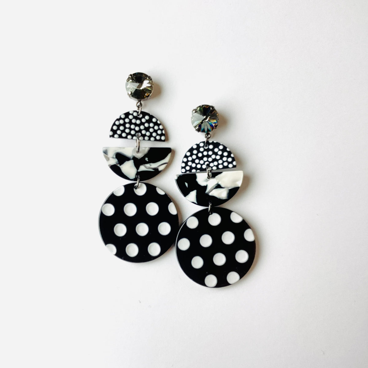 Black + White Marble + Polka Dot Earring