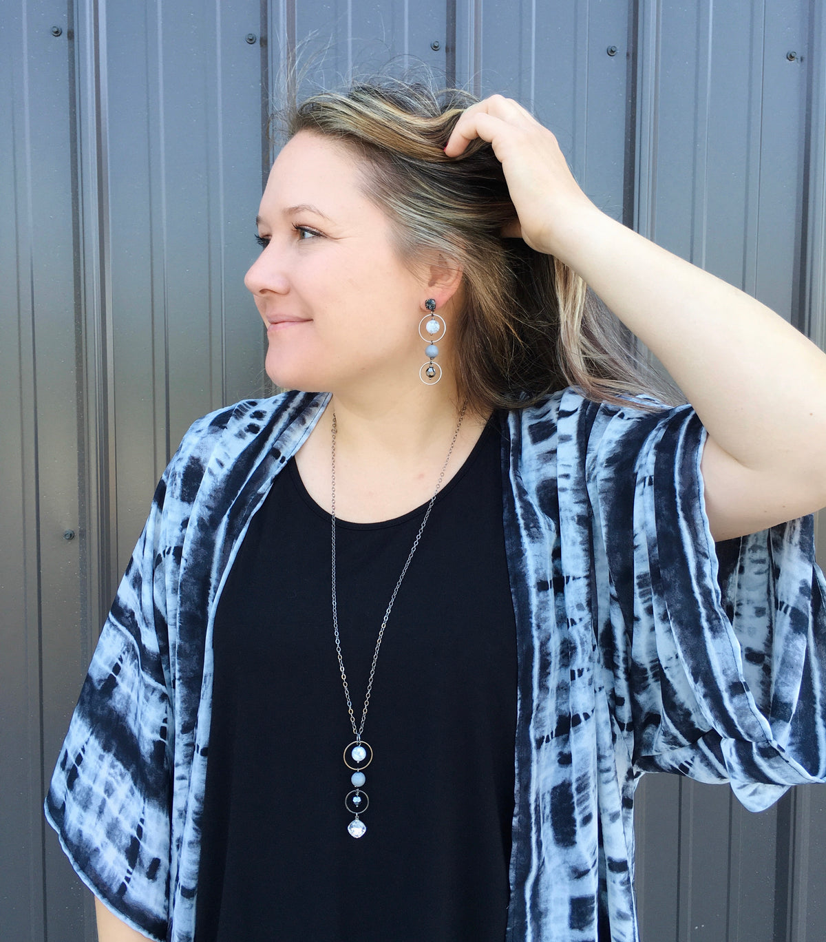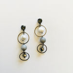 Black + White Night Earring with pops of Silver Night, Grey Stone and a White Marble Looking Stone