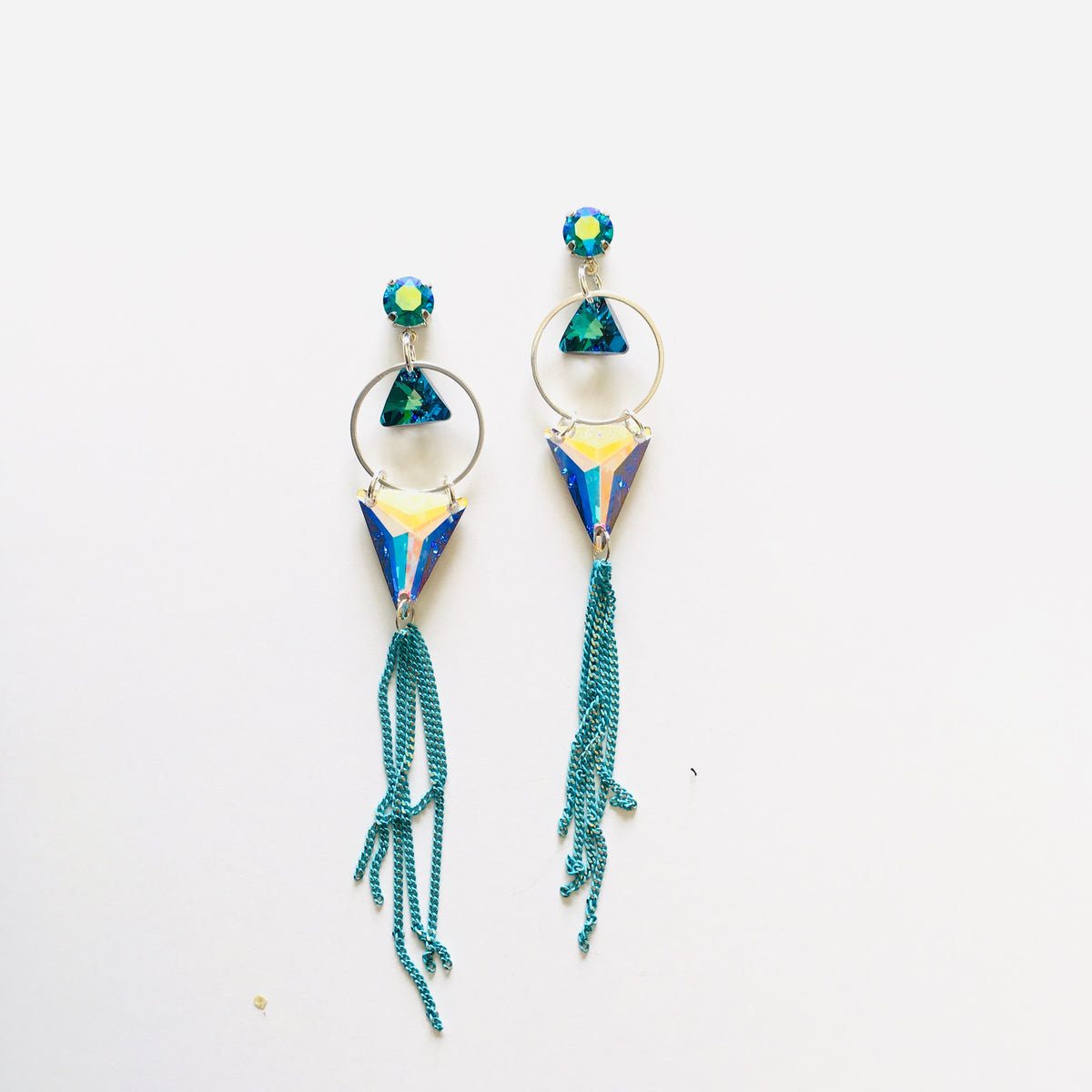 Blue Ocean Earrings featuring Blue Zircon Glacier Blue, AB, and Bermuda Blue set into Shiny Silver Metal