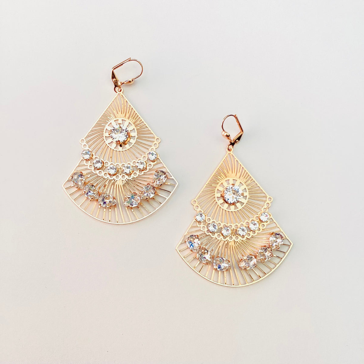 Boho Chandlier Earring in Crystal set into Rose Metal.