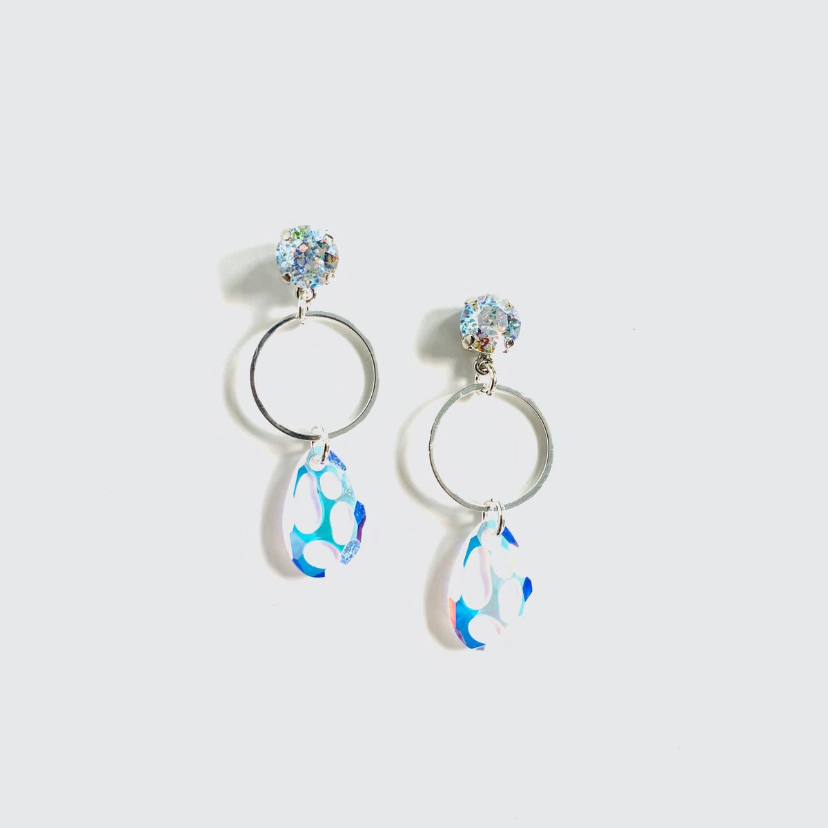 Butterfly Earring set into Shiny Silver Metal in Crystal AB