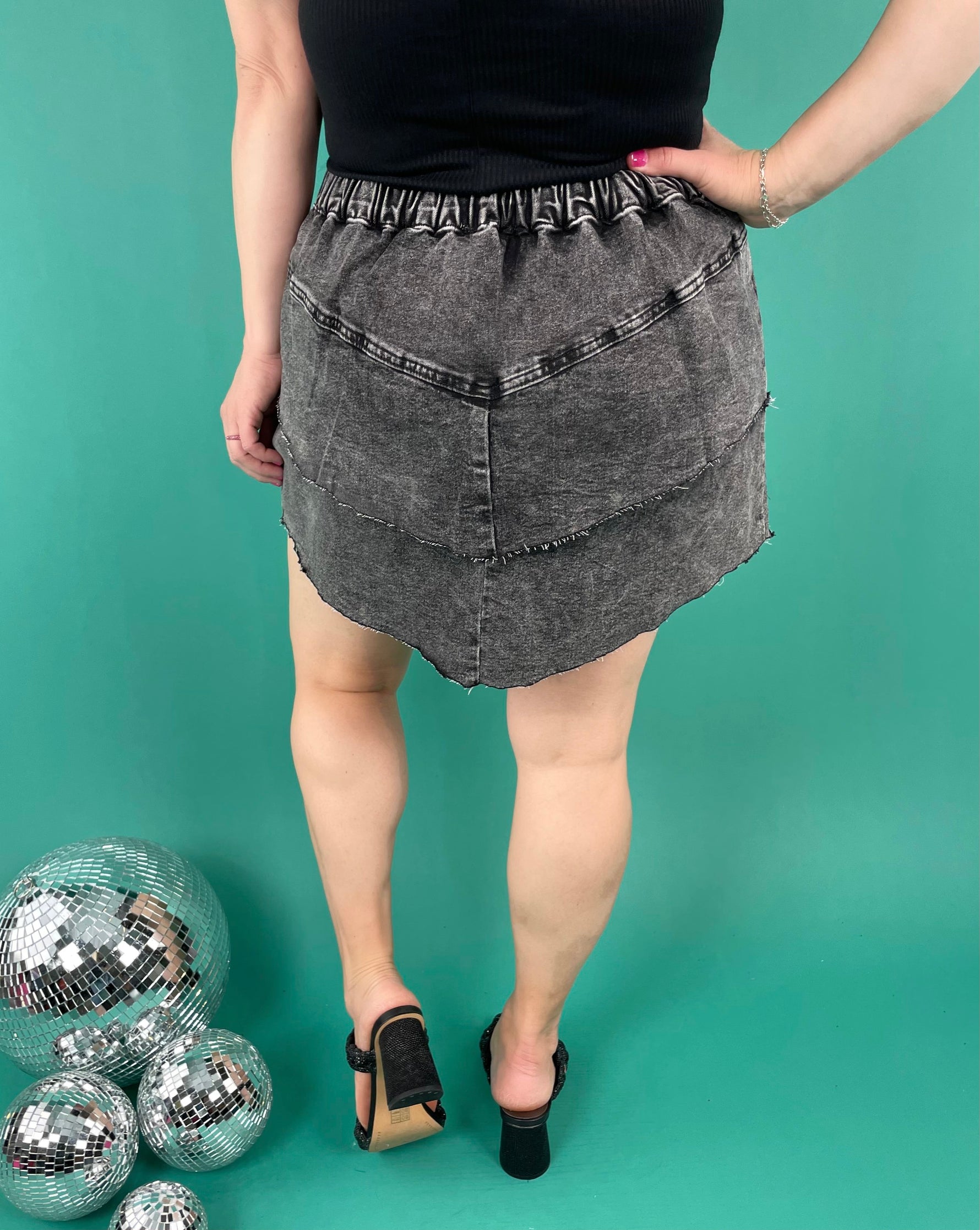 This denim skirt is a great addition to your wardrobe! Features include: tiered ruffles and washed fabric. This is so trendy and cute!