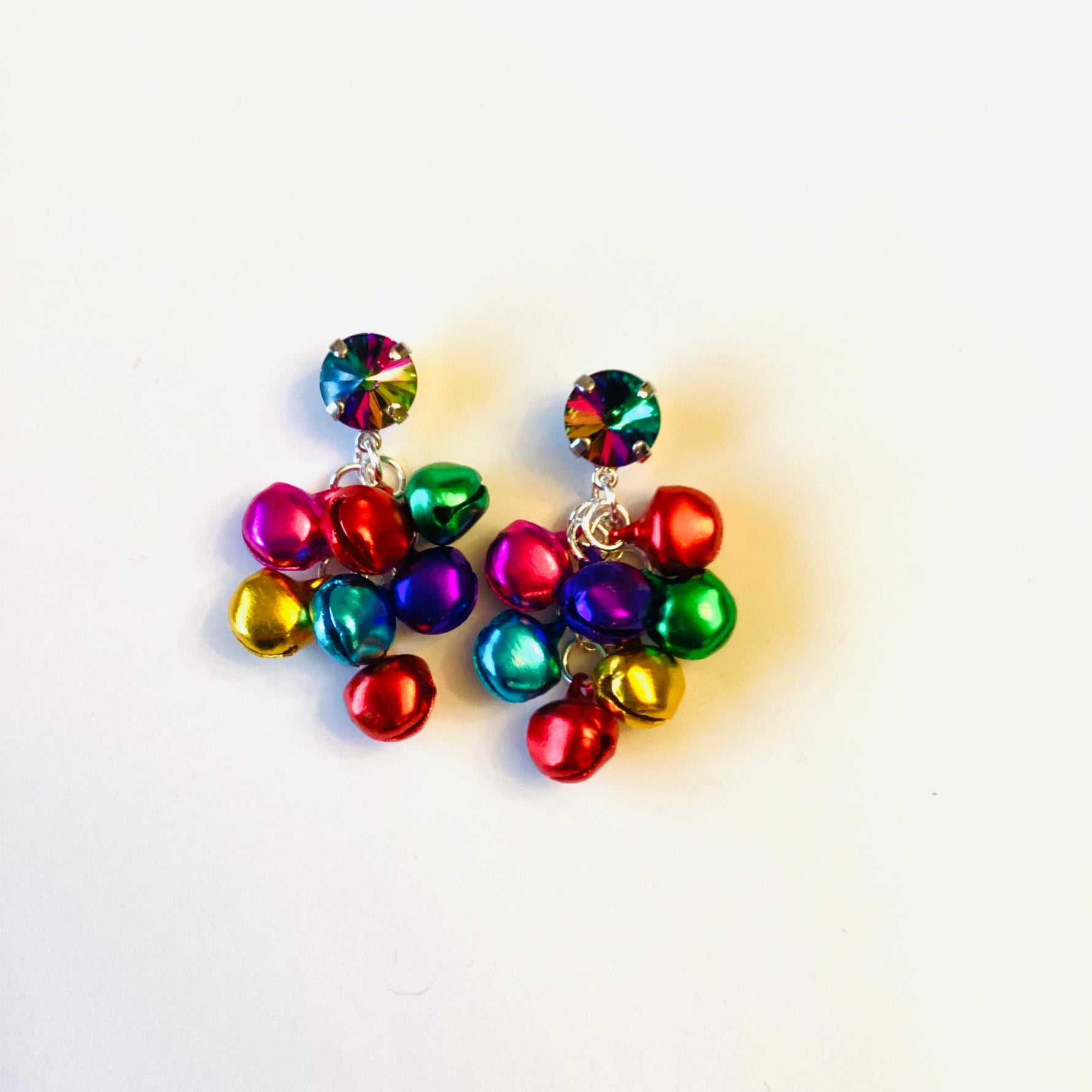 Colorful Bell Earrings set into Electra 10mm Crystal Post Earrings.
