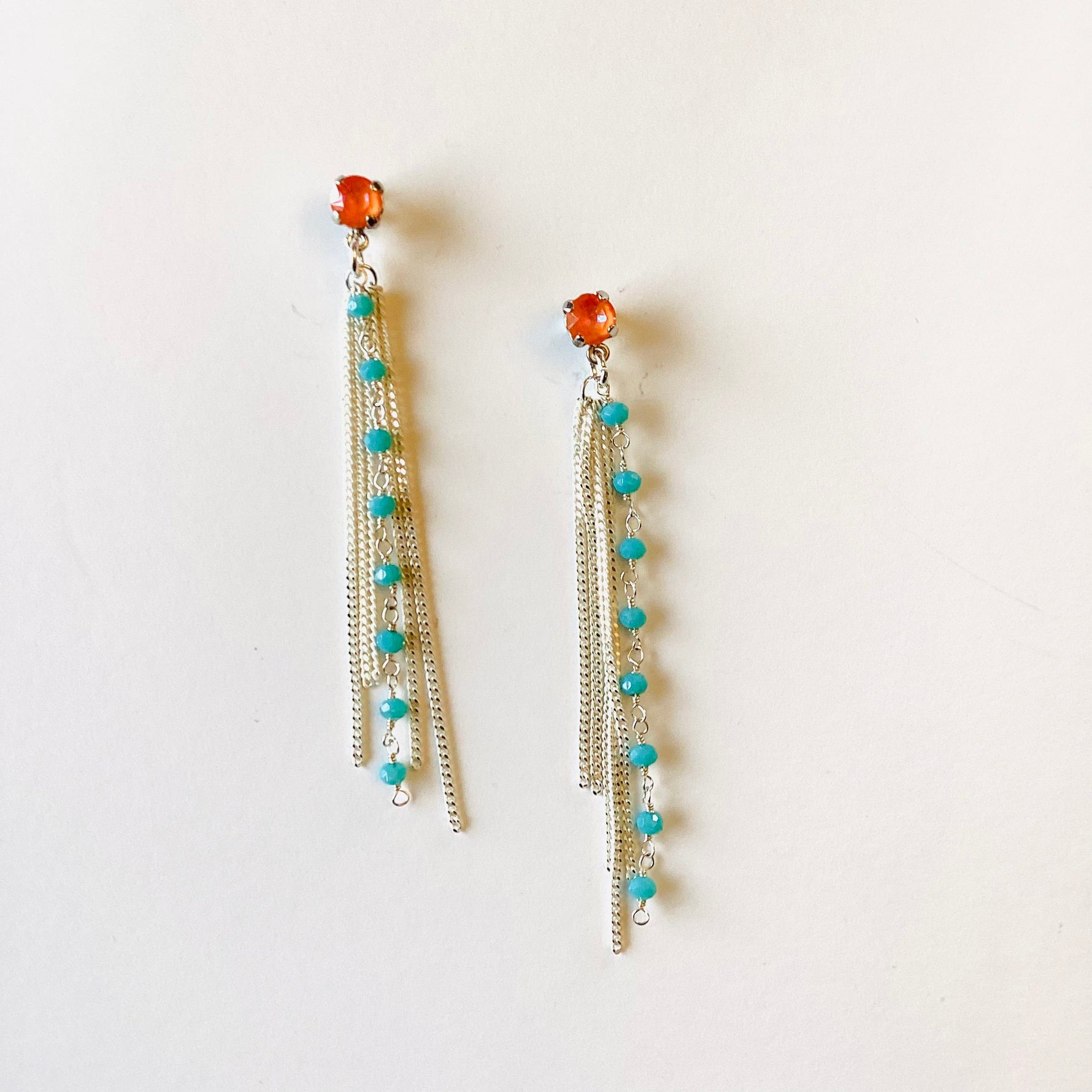 Crystals in Orange Glow with Turquoise Beaded Chain and White Chain