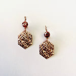 Crushed Metal Earring in Scarlet Rose Patina set into Rose Metal with Rose Gold Crushed Metal Pendant