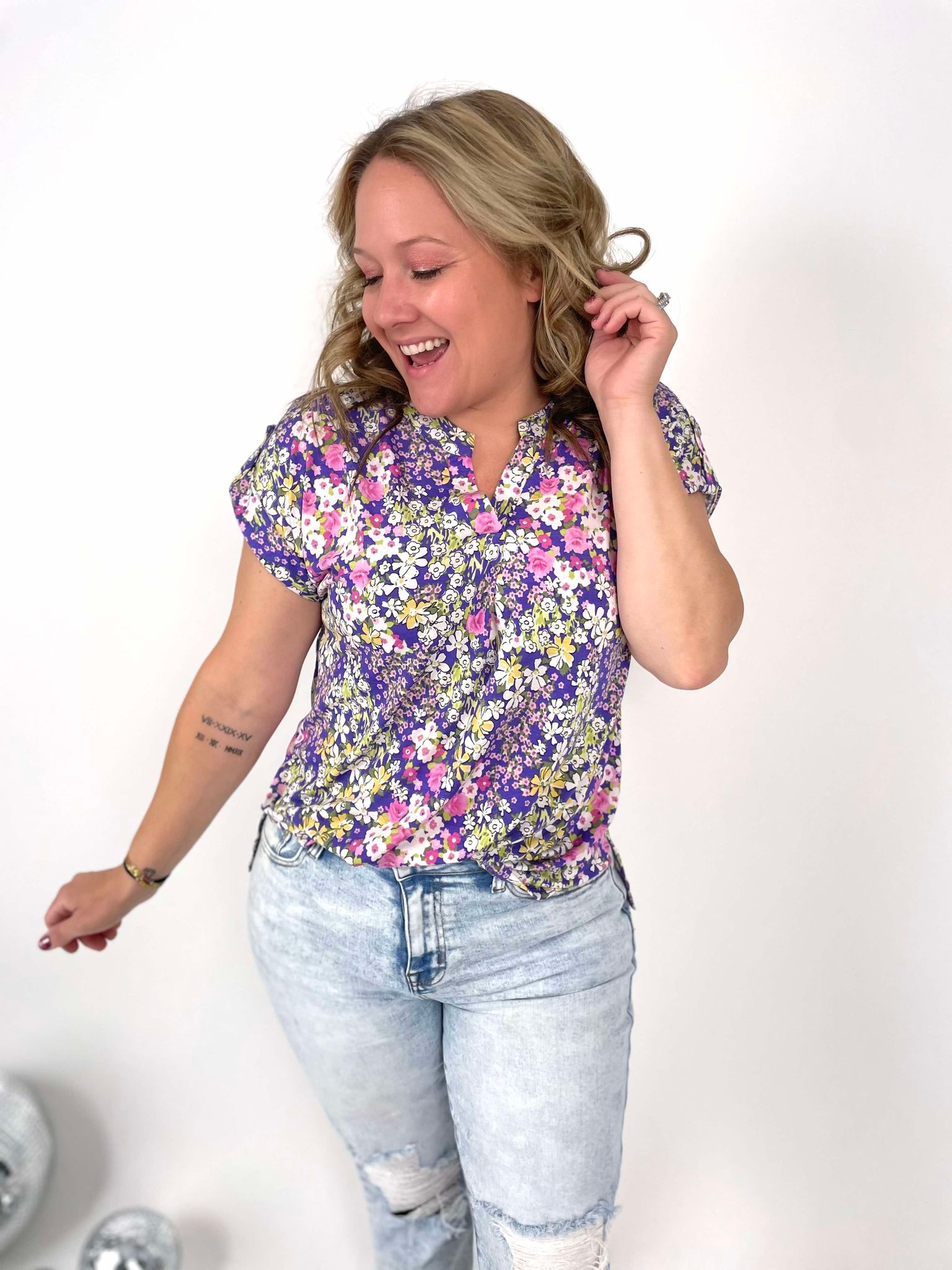 Introducing our Dainty Blooms Top! This playful top boasts a beautiful floral design and trendy dolman sleeves. With a relaxed fit and split neckline, it's both comfortable and stylish. An absolute must-have for any wardrobe. (Get ready for compliments!)