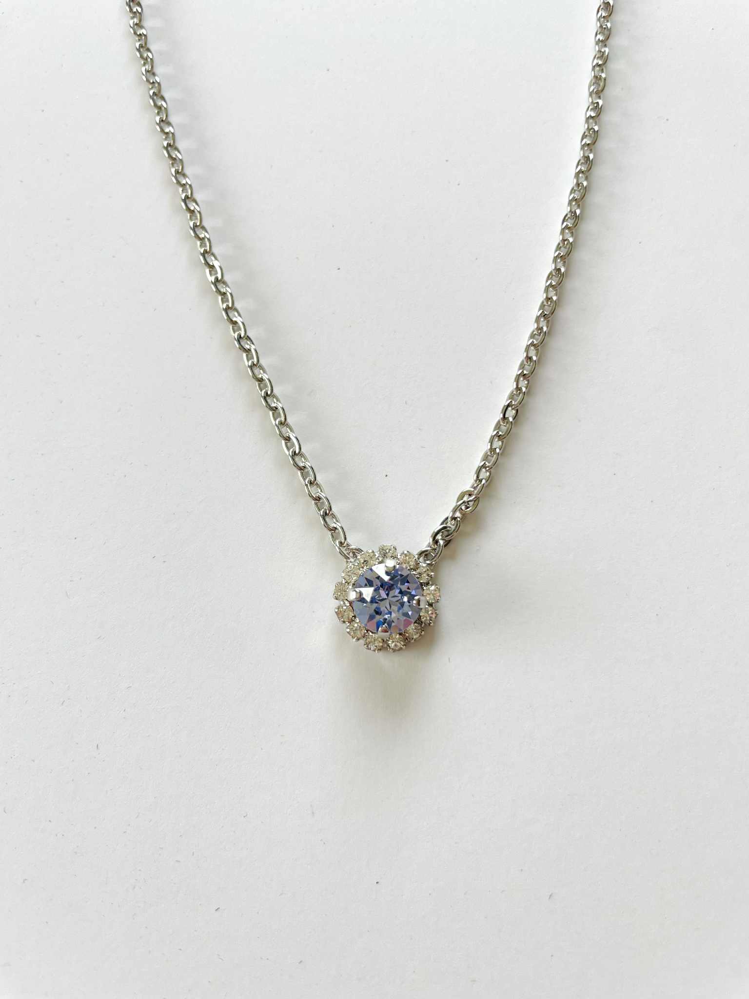 Daisy Necklace in Lavender set into Shiny Silver Metal.