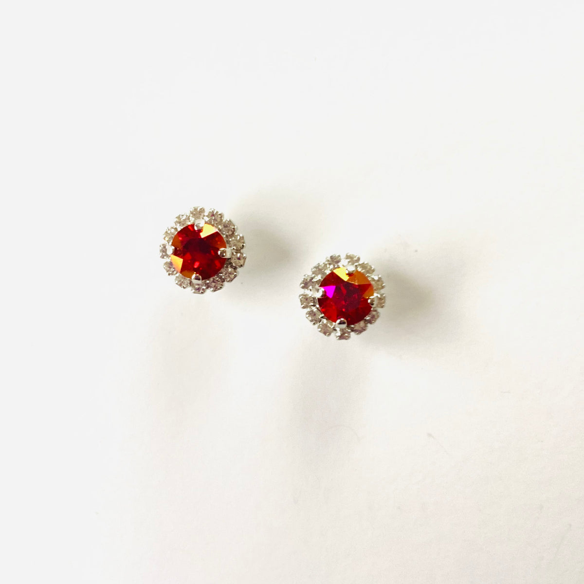 Daisy Post Earring in Light Siam Lemon set into Shiny Silver Metal with Diamond Crystal Color Surrounding.