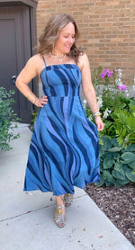 Ride the waves of fashion with our Denim Waves Midi Dress! The printed washed denim fabric creates a unique look while the straight neckline and shoulder strap provide a comfortable fit. The A line skirt and back zipper closure make this dress easy to wear, perfect for any occasion.