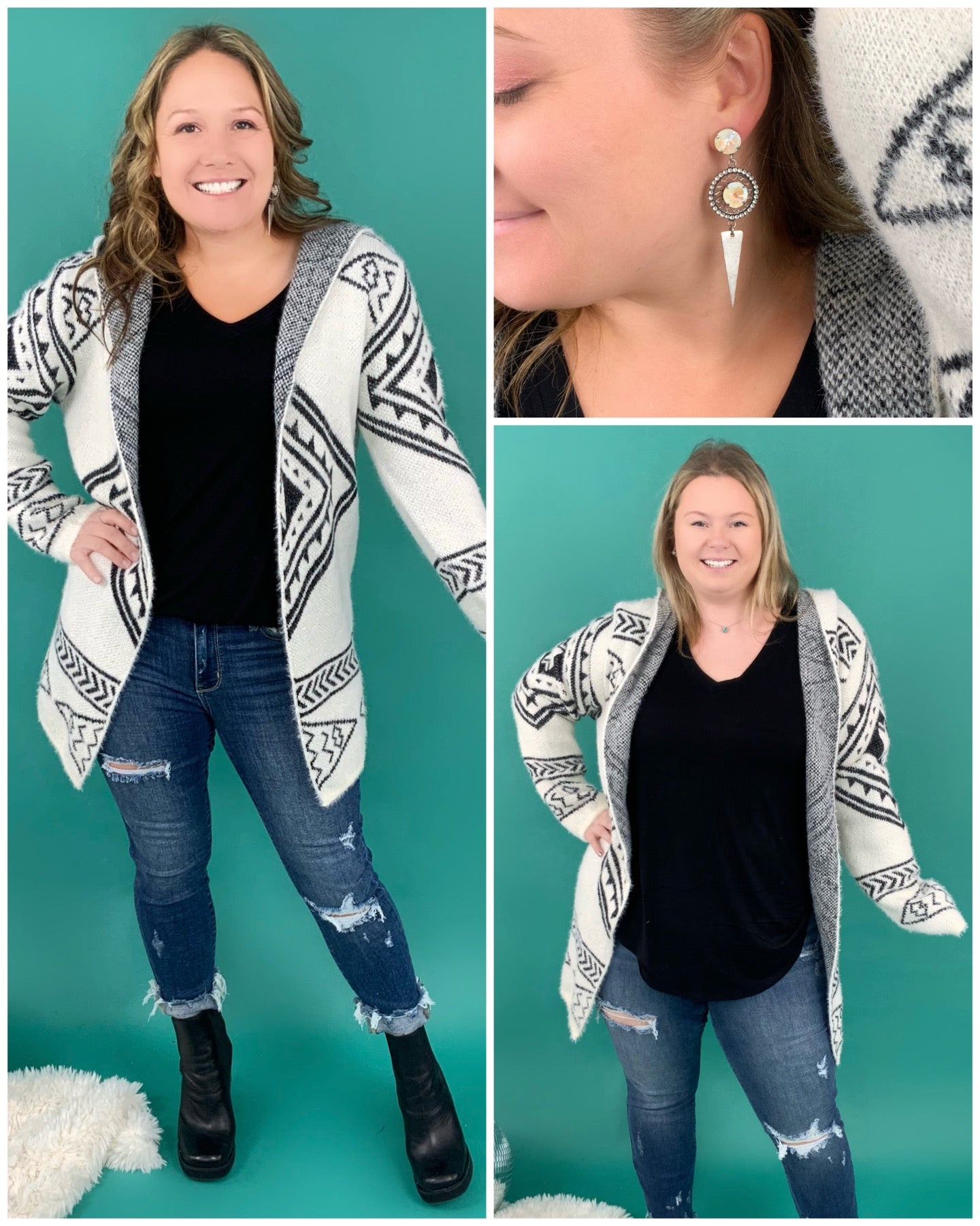 Cardigan :: Hooded Aztec Cardigan - Black and Cream