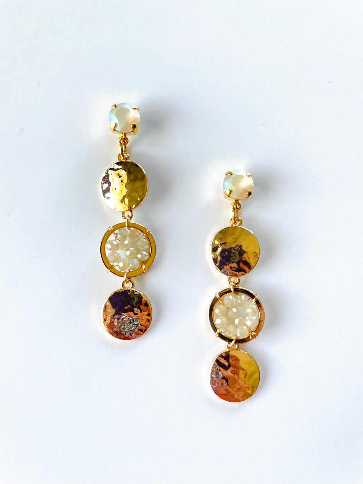 Lightweight Gold Pendants and Crystal Post set into Gold Metal.
