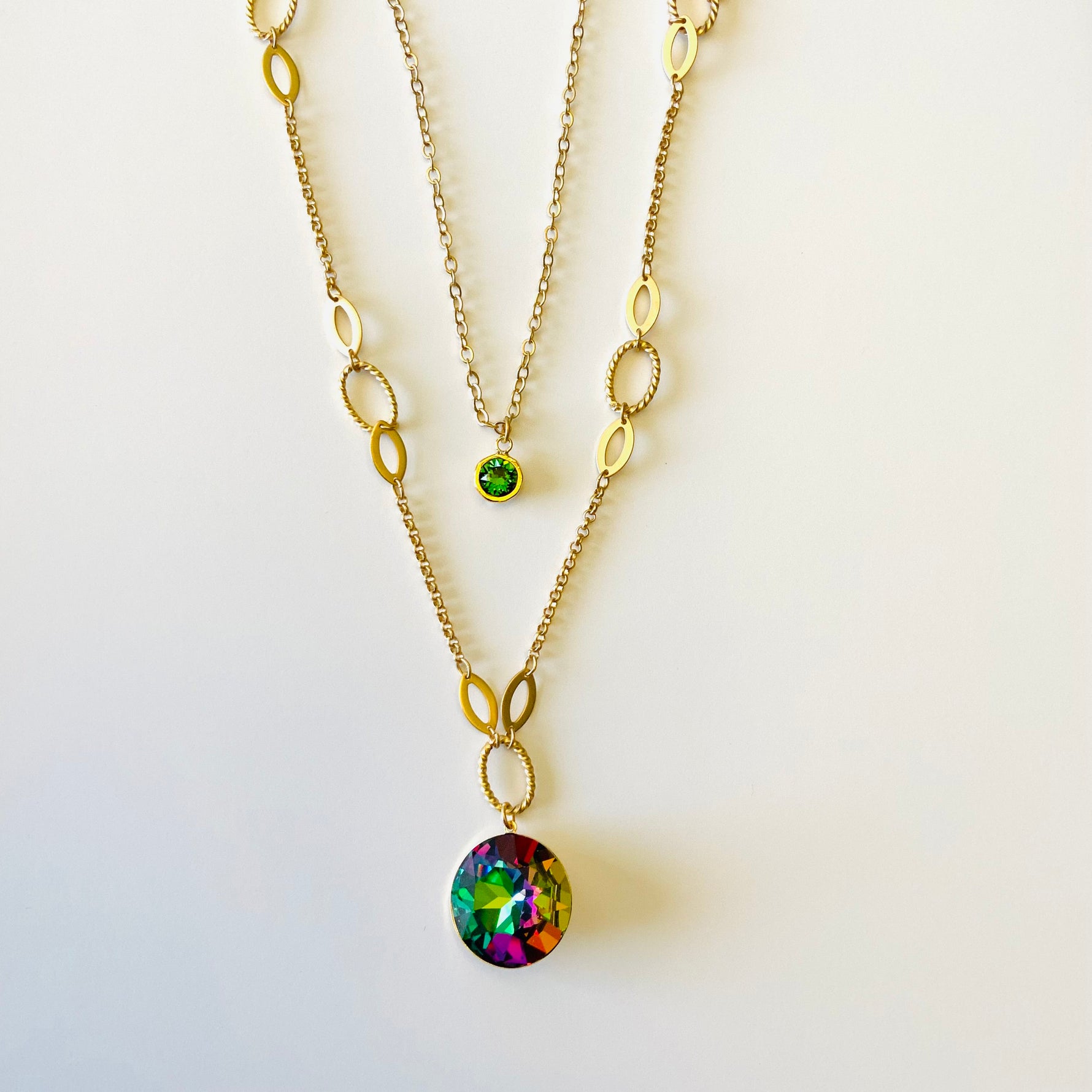 Electra Elegance Necklace set into Matte Gold Metal with Fern Green