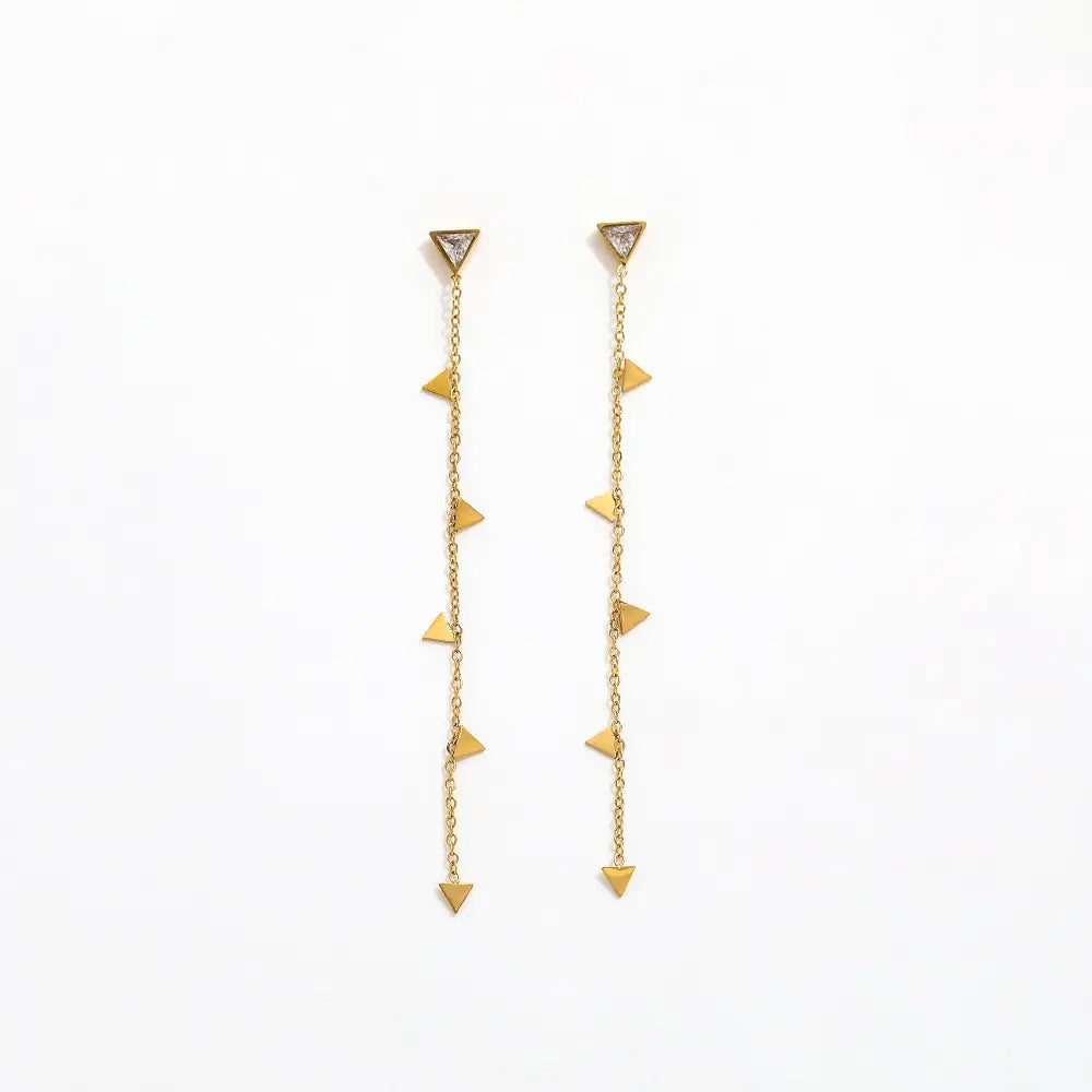Add a touch of effortless elegance to your look with our waterproof Elegant Edge Earrings. The dainty triangle design, crafted with 18k gold plated stainless steel, exudes timeless sophistication. These versatile earrings are the perfect accessory for any occasion.