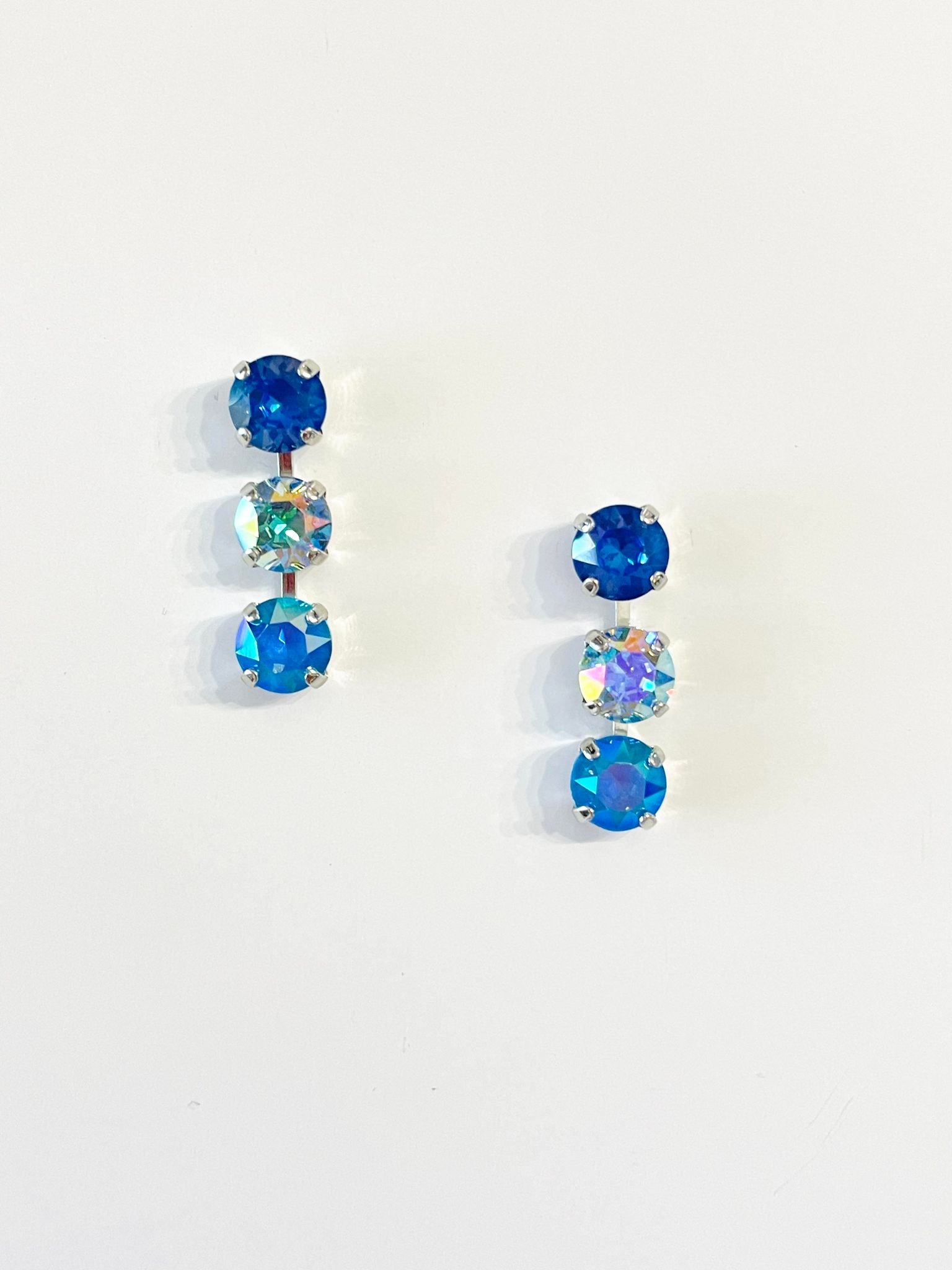 Galactic Blues Polka Dot Earrings set into Shiny Silver Metal with Royal Blue DeLite, Aqua Transmission, and Electric Blue Ignite AB