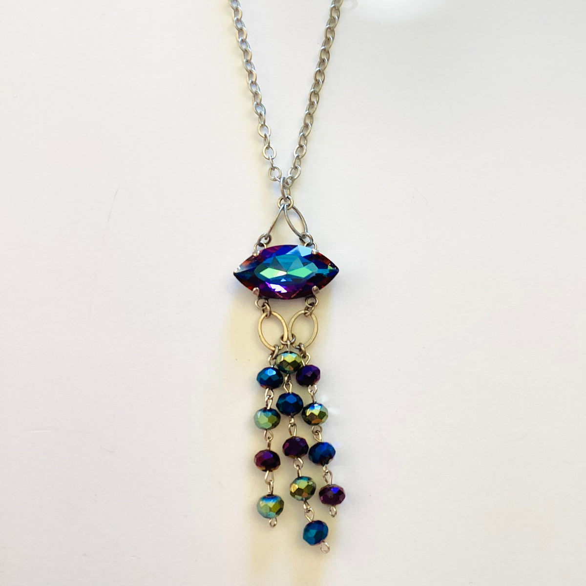 Galaxy Fringe Large Stone Pendant Necklace in Electra set into Antique Silver Metal.