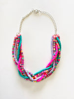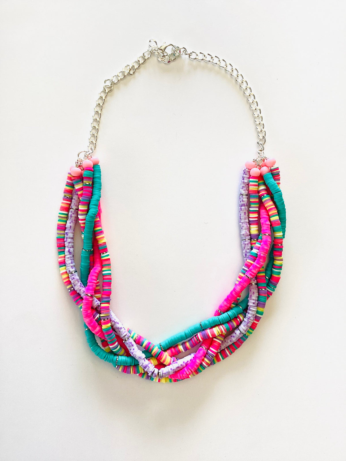 This braided statement necklace is AMAZING! Multiple Strands of Heishi Beads braided into a showstopping design!