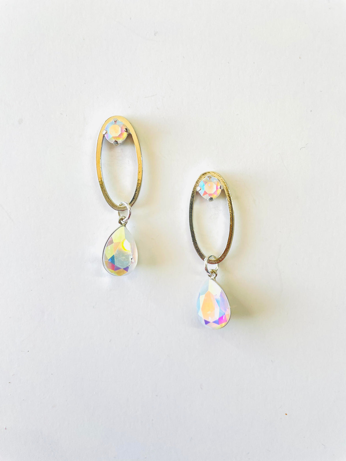 Holographic Halo Earrings set into Shiny Silver Metal. Crystals in Ultra White Lacquer AB