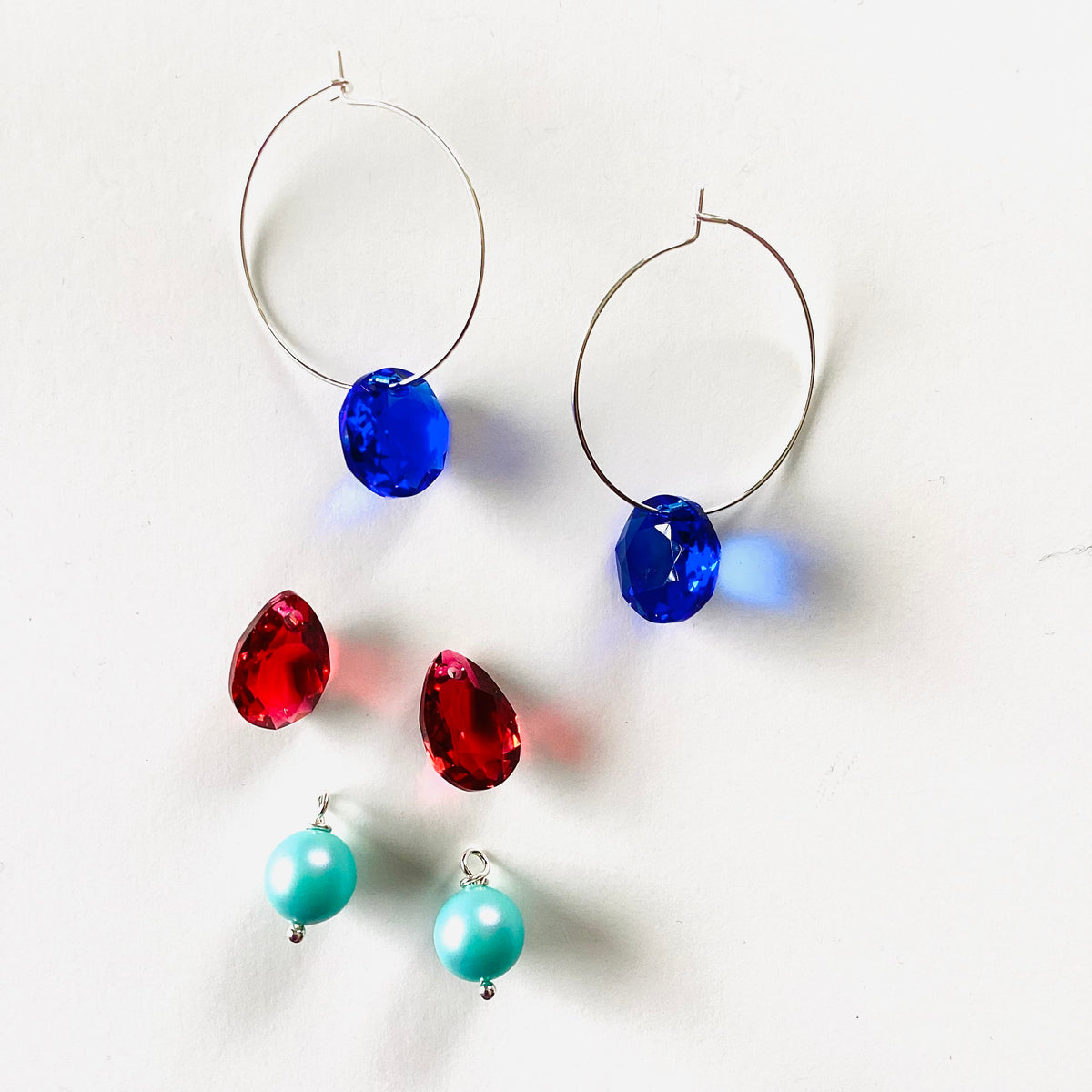 Earrings :: Interchangeable Hoop Earrings! Set of 3 Earrings! Majestic Blue, Scarlet, Iridescent Light Turquoise