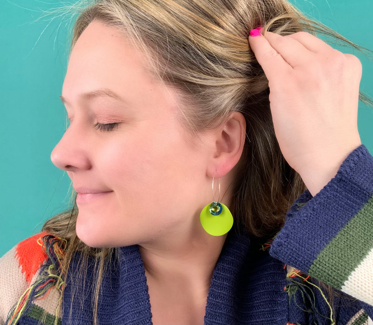 Earrings :: Lime Wave Hoop Earrings