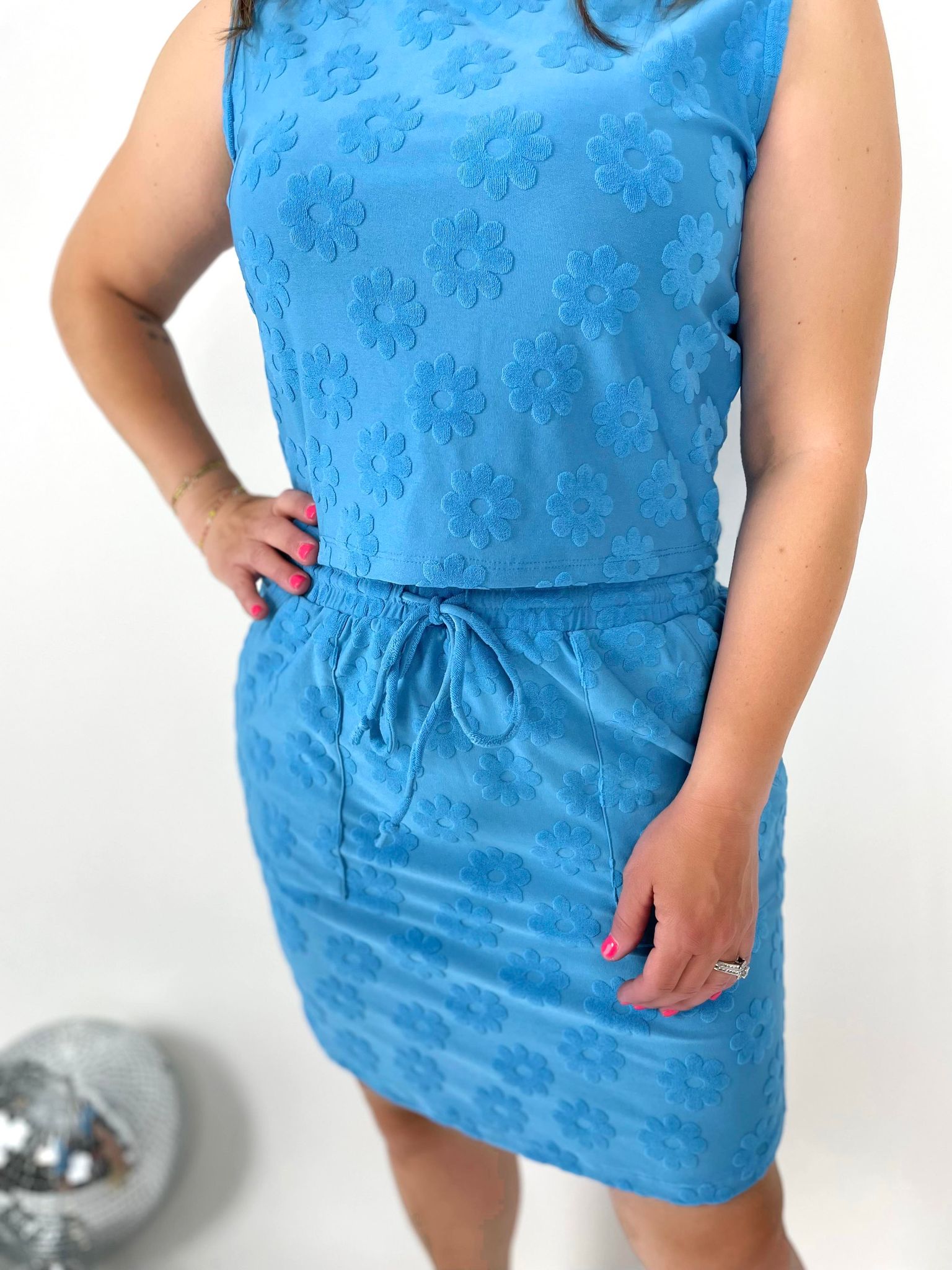 These terry sets feature an adorable raised daisy pattern. The set includes a tank top and elastic waist pocketed skirt for the cutest most comfortable fit. Perfect for any occasion, this stylish set is SO soft and cozy you will want to live in it!